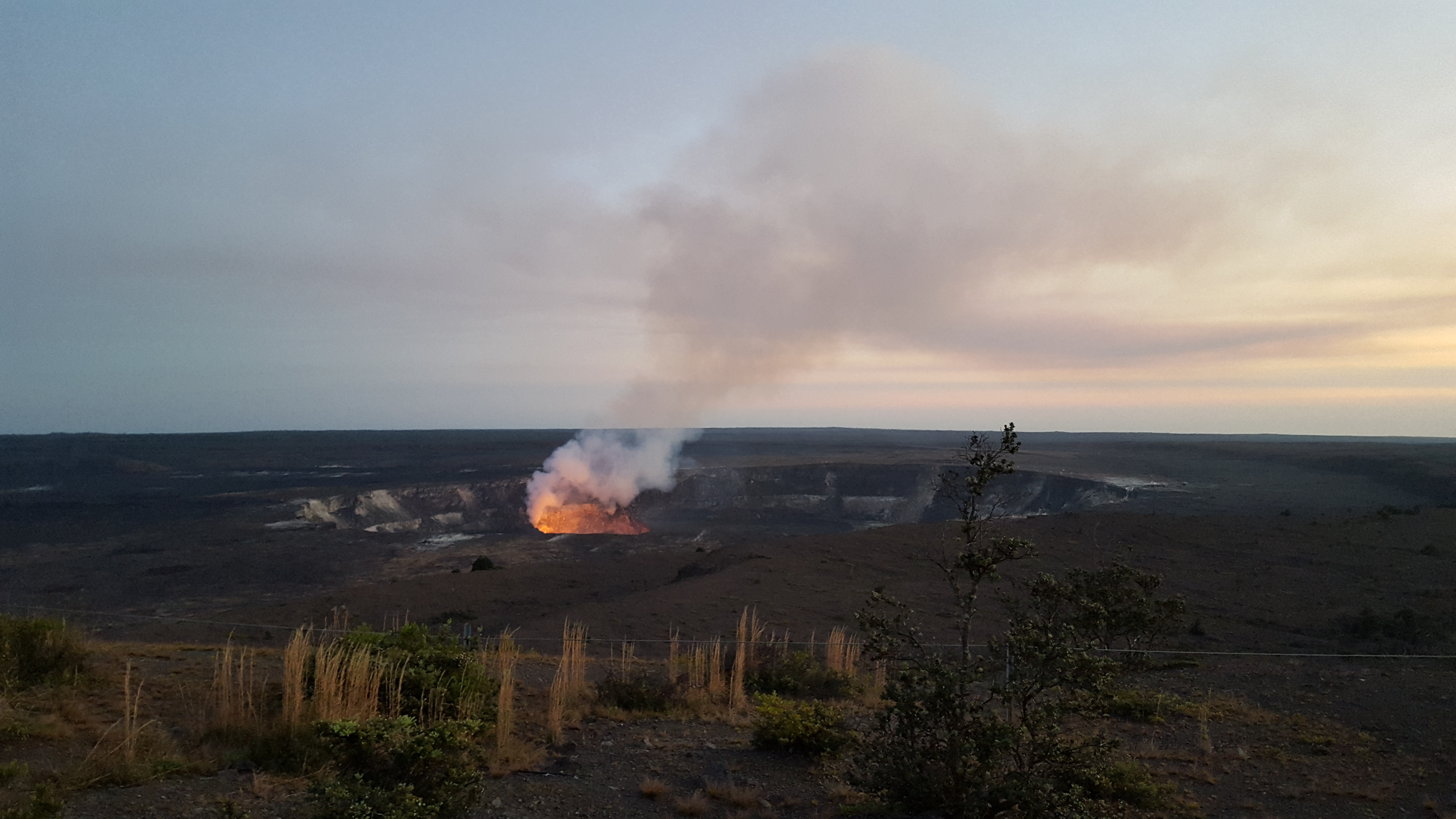 We drove back to the Kilauea crater at around 6.15 pm as it was starting to get dark and witnessed the orange glow of the molten magma from the lava lake within the crater which starts to deepen to red as the sky gets darker. The car park and viewing area were now much more crowded and it was an amazing sight and well worth staying a bit later to see.