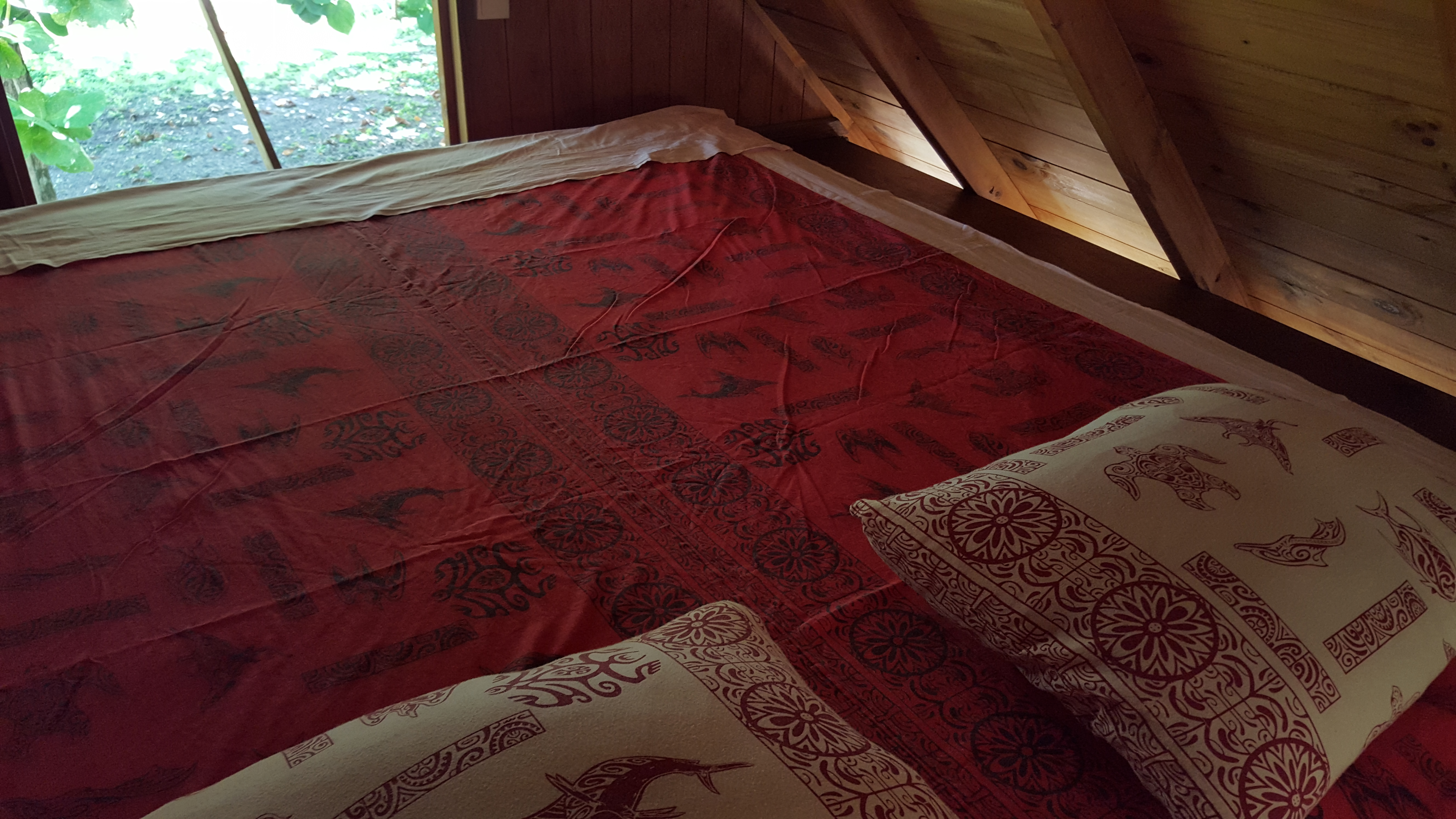 It was fun sleeping upstairs in the cabin under a mosquito net although the first couple of nights were noisy with the open windows. I watched gekos snapping at mozzies above our head, heard a loud buzzy insect come in (attracted to the light) and was woken up by screeching cockerels and barking dogs. But overall hearing the crashing waves of the sea more than made up for it. And I slept much better for the second two nights.