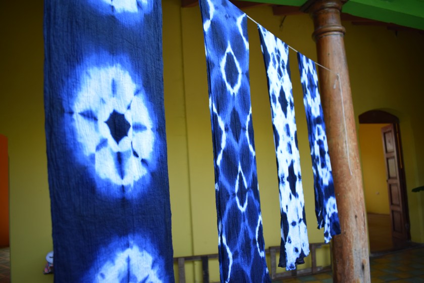 Next we visited an Indigo shop. Indigo plants were grown and used for dying fabrics back in Mayan times hundreds of years ago. This tradition continued through to the 1800’s when indigo was big business for the local farming community. El Salvador has perfect growing conditions for indigo plants and is the main indigo producer in Central America. We were fascinated by the history and dying process and arranged to participate in a tie dye workshop the following morning.