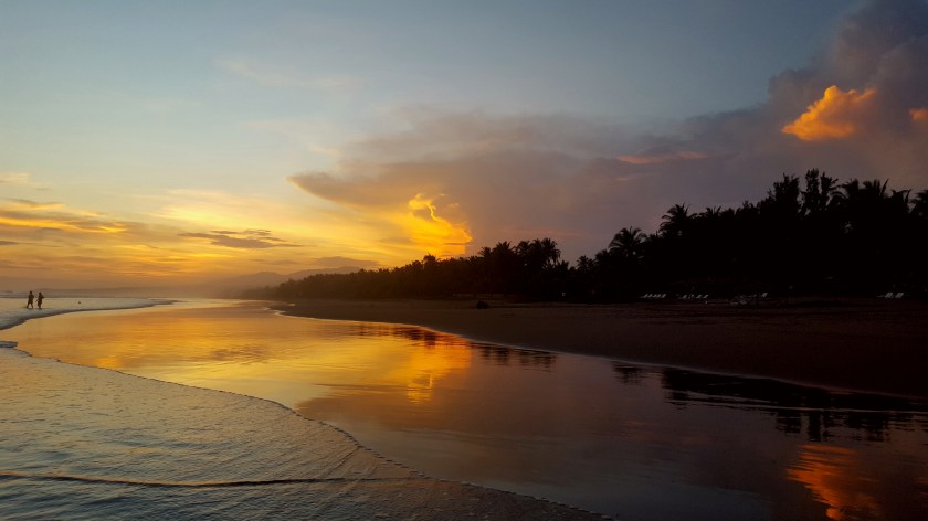 Staying in La Tortuga Verde was a wonderful and relaxing experience. There are many colourful cloth hammocks throughout the resort including two on everyone’s verandah’s. All of the rooms are eco friendly and much of the food is organic and grown within the grounds. You can hear the Pacific ocean crashing continually in the background which adds to a sense of peace and tranquility. We were also lucky to see two fabulous sunsets during our stay (above and top picture).