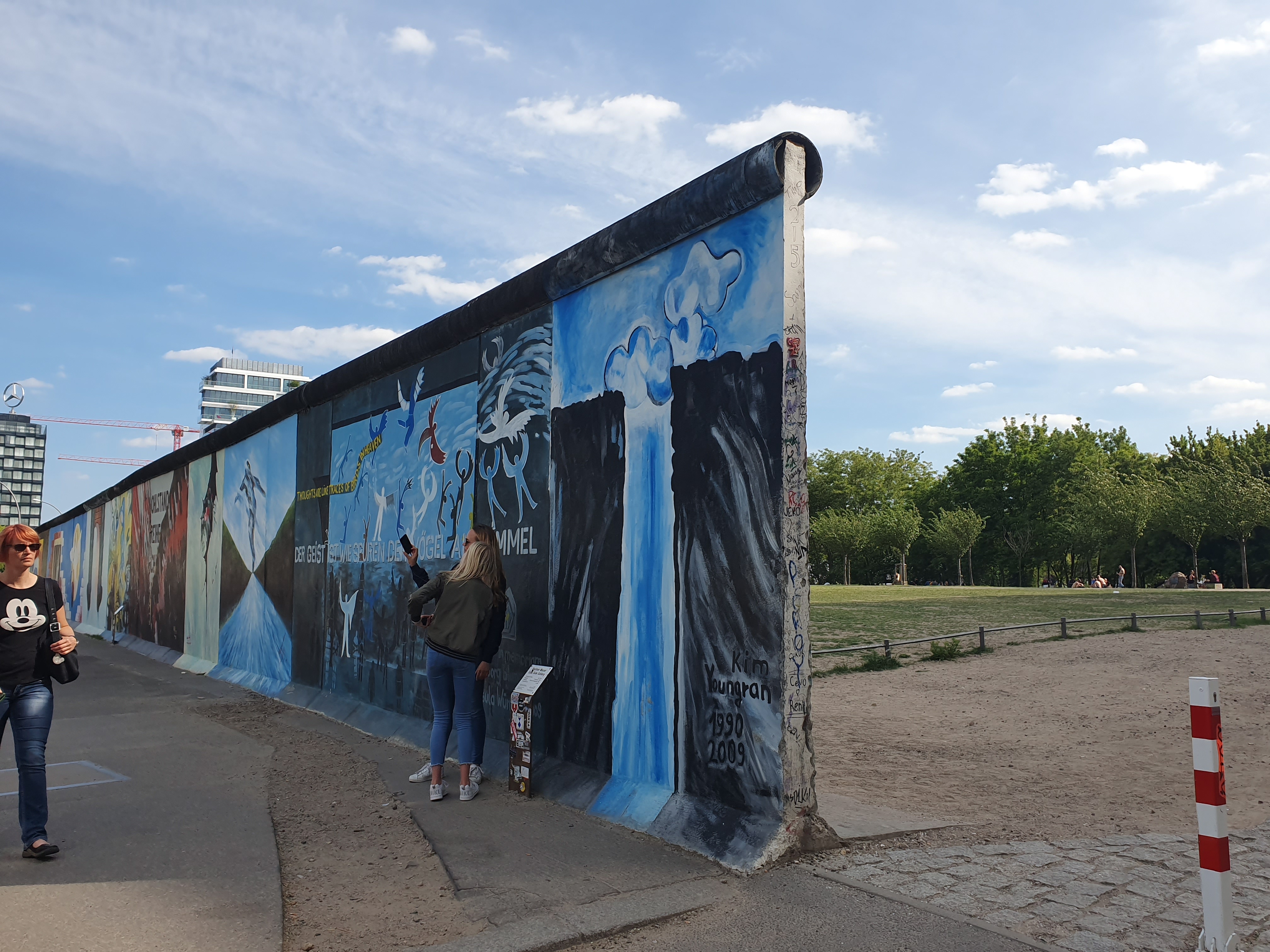 A large section of the Berlin Wall remains at East Side Gallery, a collection of 105 paintings. These are on the east side of the wall and were painted in 1990 by artists from around the world. Over the course of 20 years the paintings became damaged by erosion and graffiti however they have been restored since 2009.
