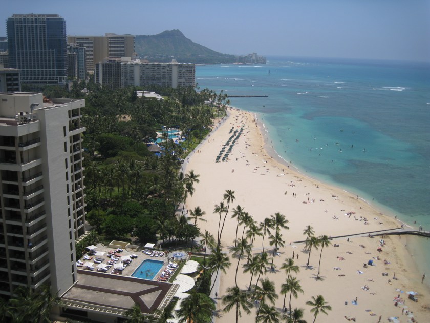 And paradise it was! From the moment we stepped off the plane into the warm, sunny weather and made our way into the airport terminal with its open air walkways lined with tropical plants and flowers. At this point we were grateful not to have to go through any more immigration as we collected our cases and took a taxi to Waikiki Beach and our hotel.