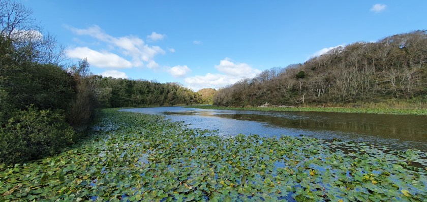 Having parked at the National Trust car park in Bosherton we made our way down to the lily ponds, a spectacular mass of waterlilies! The best time to see the waterlilies is in June/July when they are in full flower. There are several trails around the lily ponds and coast and you cross the lakes by narrow wooden bridges.