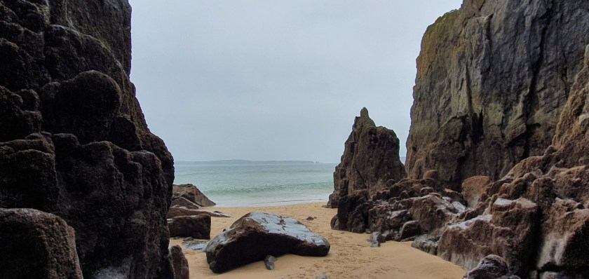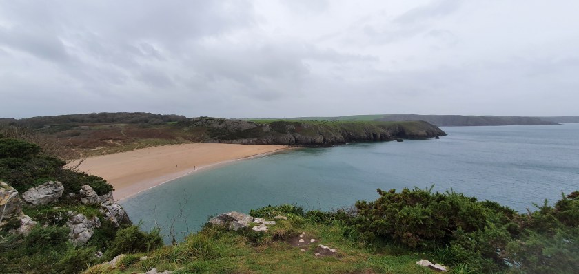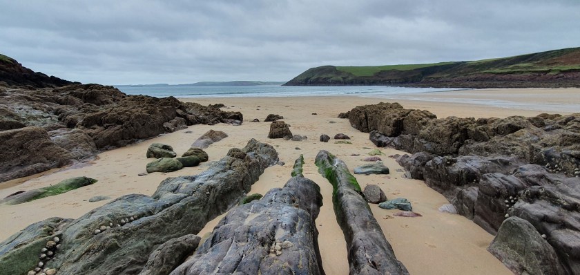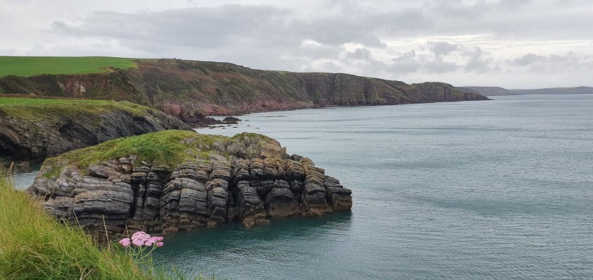 We were thankful that the morning had stayed fairly dry with just the odd bit of drizzle and enjoyed a coffee and snack in a sheltered corner of the beach. We walked a bit further around the coast towards Broad Haven South but turned back when it began to rain…