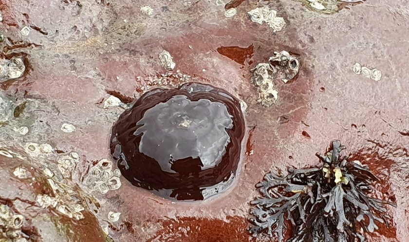 Within the rock pools where we saw many blobby red sea anemones. With their tentacles tucked in they looked like small lumps of jelly.