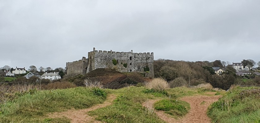 From Stackpole, we drove back towards Tenby and stopped at Manorbier. Google Maps took us along tiny roads into the village where we were reminded just how un-commercialised this part of Wales is. No dual carriage ways linking coastal towns or villages that you might see in many parts of England.