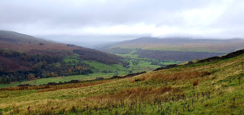 We climbed higher and through the mist we could see the rolling hills and green fields of the Wharfdale Valley as they emerged into view.