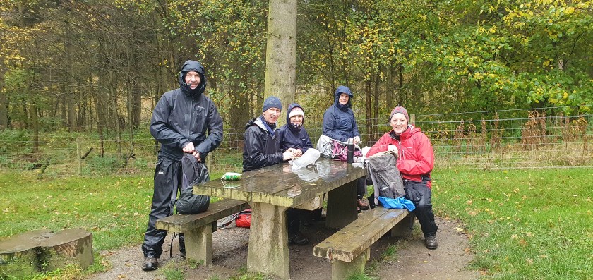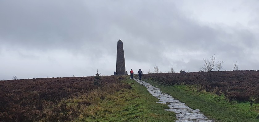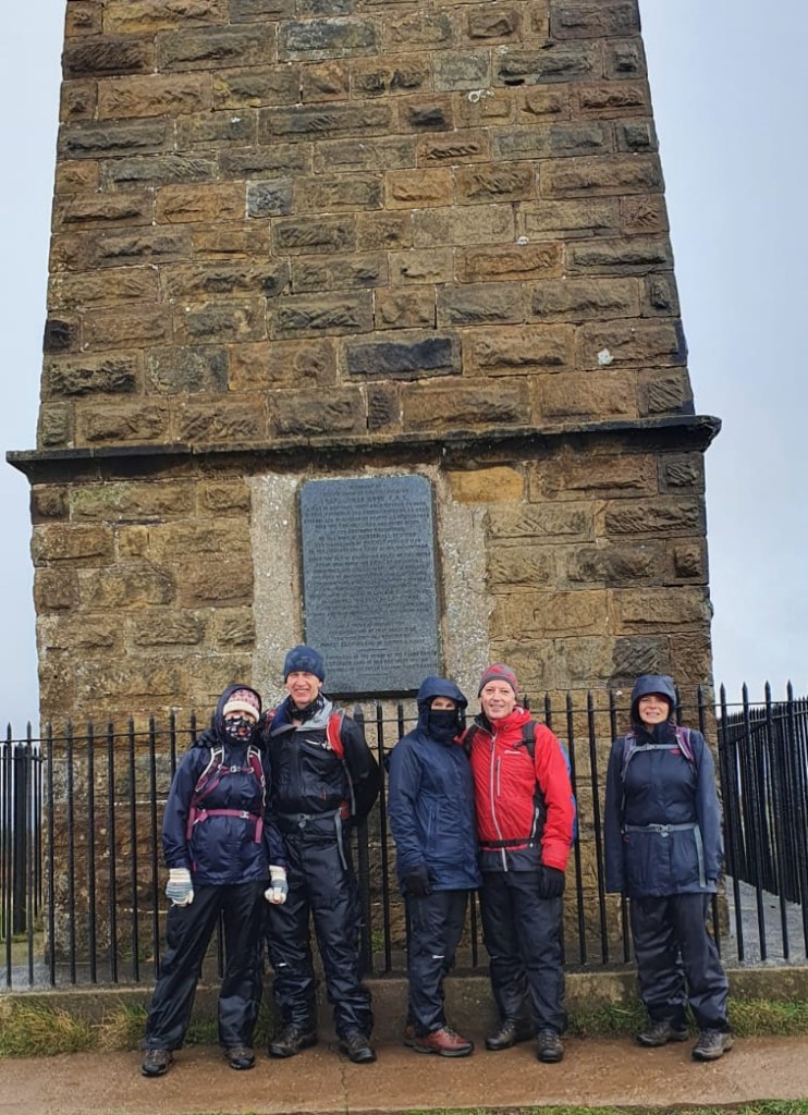 Before we got to the Cook Monument we came to the main visitors car park, found a bench and decided to sit in the rain and eat our lunch, thankfully OK as we all had waterproof trousers on. Back to soggy sandwiches and somewhat different to the previous days’ luxury lunch in the Tan Hill Inn…