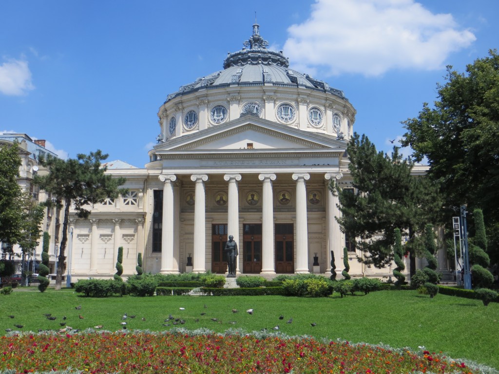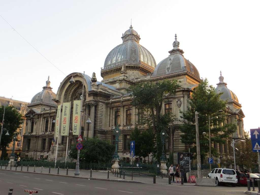 Having left our backpacks in our lovely comfortable room we obtained a map from the reception and set off to explore the highlights of Bucharest. However we didn’t venture too far as we were peckish so the first stop was an outside bar with green foliage that offered plenty of shade. We relaxed in the attractive courtyard as we shared a tasty pizza with a glass of red wine each. The pizza was large and perfect for two with the total cost of lunch being 20 euros (about Β£18 at the then exchange rate).