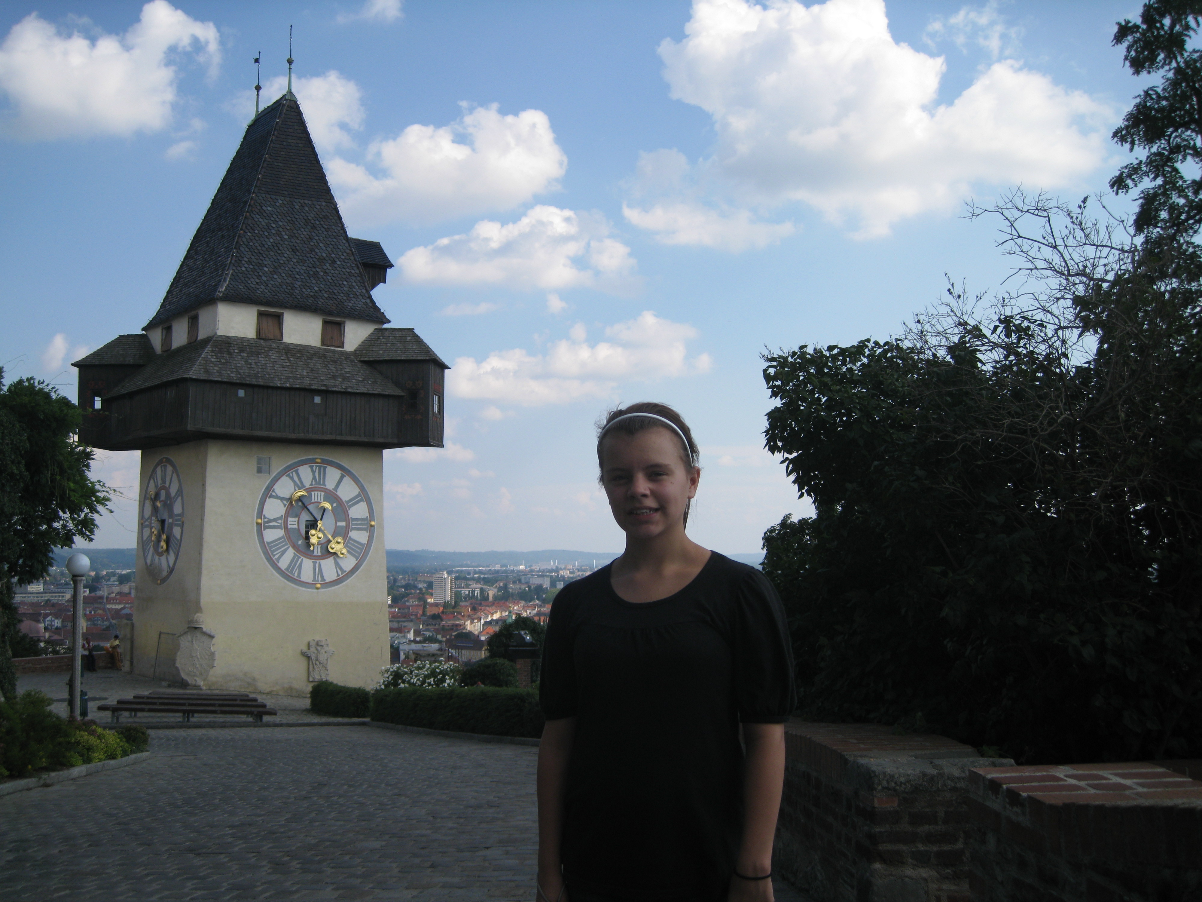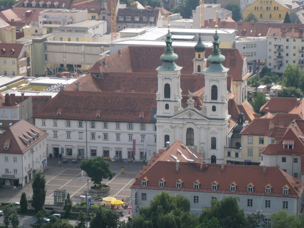From the clock tower we could see panoramic views right across the whole of Graz and beyond to the green mountains in the distance. The 13th century mediaeval clock tower has confusing hands with the long hand pointing to the hour and the short hand pointing to the minutes!