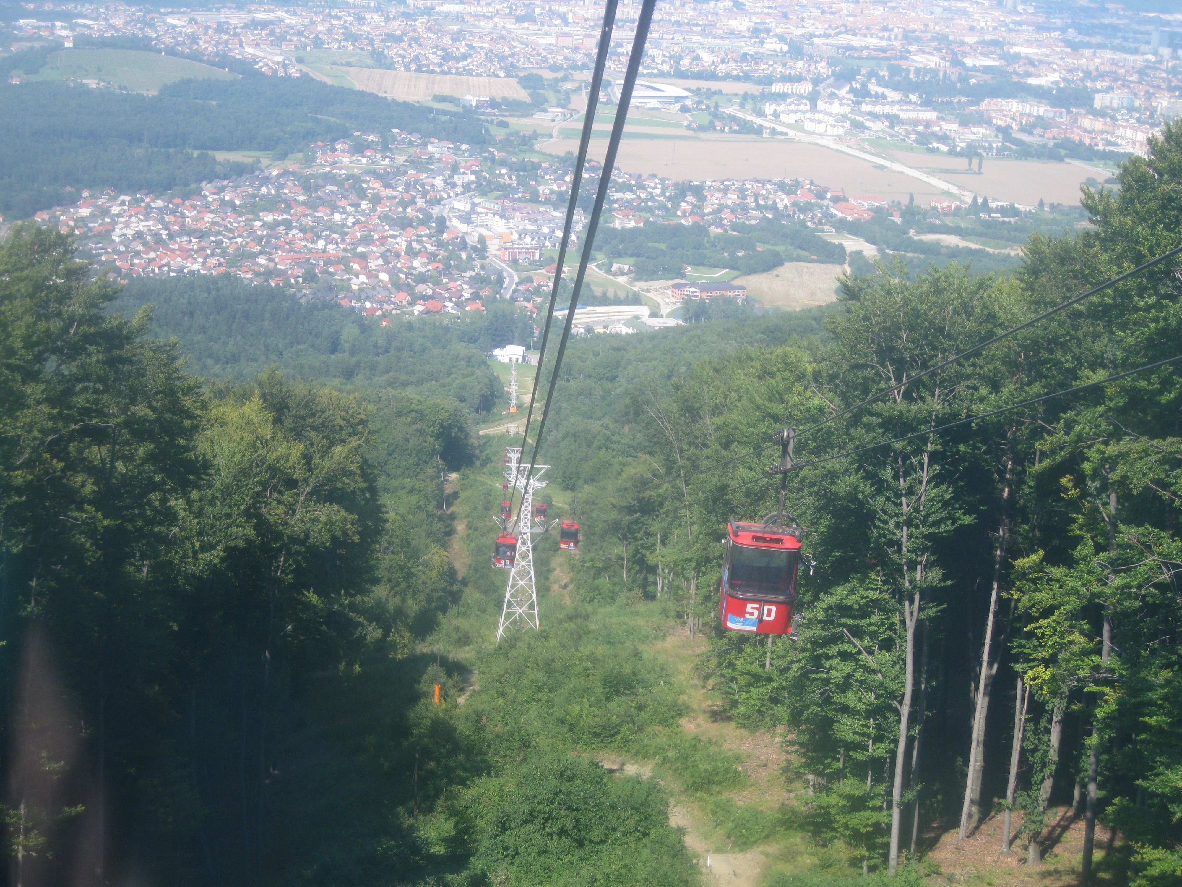 The gondola ride took about 10 – 15 minutes to get to the top of the mountain where we could see right across the valley with Maribor in the middle and more mountains in the distance. It was a reasonably clear day although hazy in the distance.
