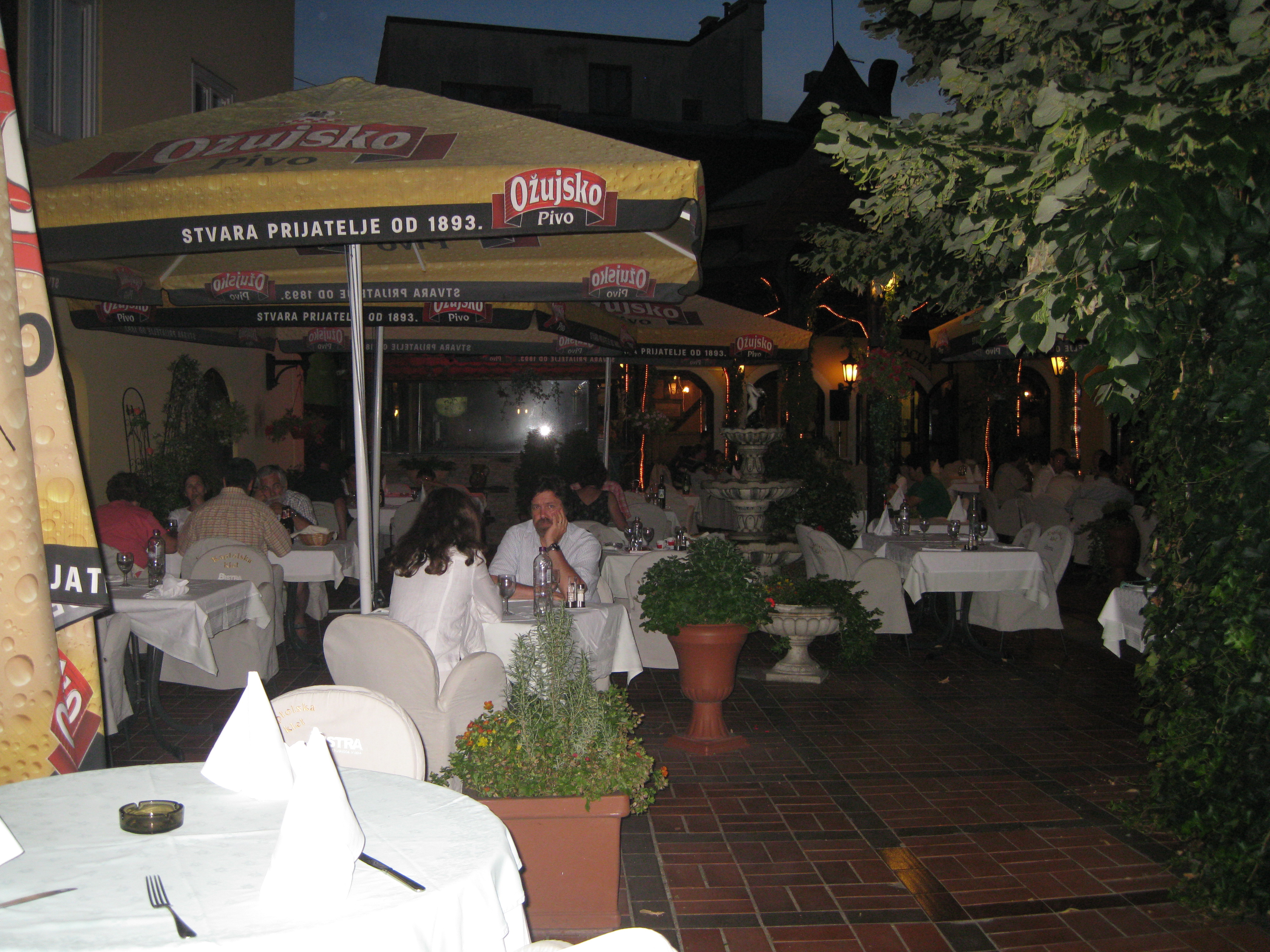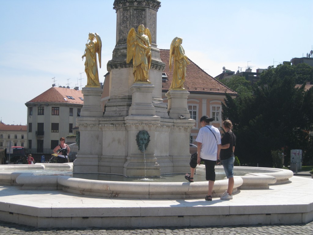 We got off at the train station and walked through the park area back to the large square. As we were looking for somewhere, a friendly local asked if he could help and suggested a restaurant opposite the cathedral. It was excellent! We sat outside in the warm evening and were given some cottage cheese with herbs and some fresh crusty bread. James and Zoe had spaghetti bolognaise and I had Croatian veal stew with mashed potatoes and a glass of Croatian wine. We all enjoyed our huge meals which were good value with a total bill of less than £25.