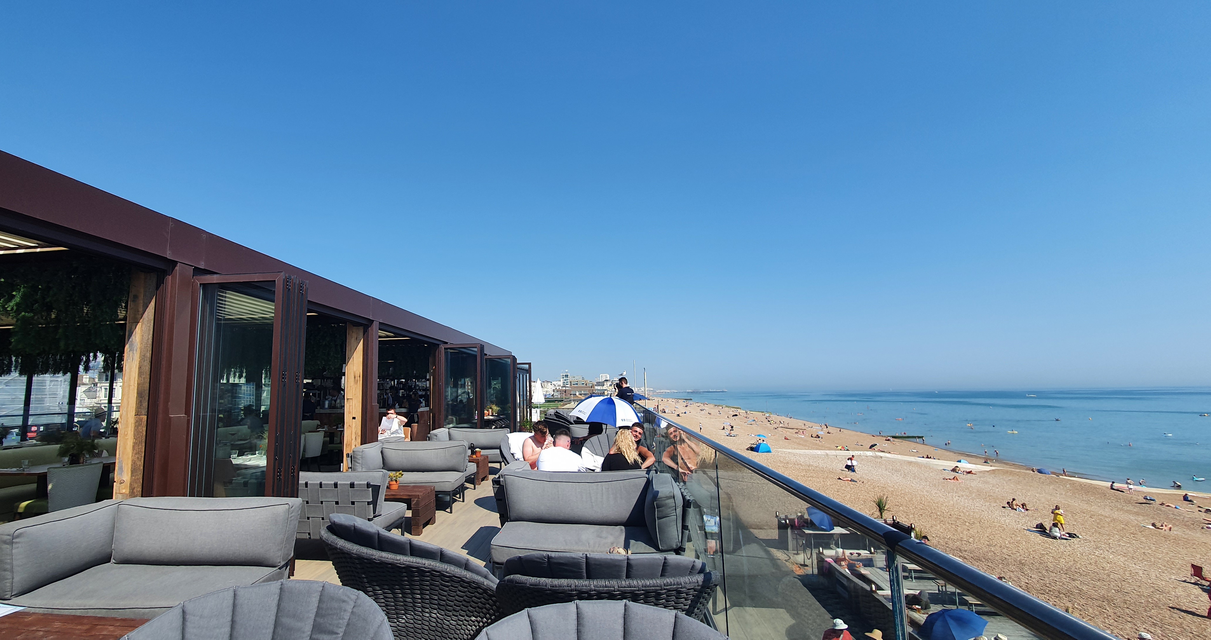 And a bit further along, a refreshing drink on the roof terrace of the Rockwater Hove restaurant. While we were able to walk in and there were some spare outside tables, this is a popular place and it is probably advisable to book a table if you wish to sit inside and have dinner. Without any breeze and with temperatures at around 27 degrees the roof terrace was a real sun trap! However there was plenty of umbrellas, which would also cater for the more common occurence of rain!