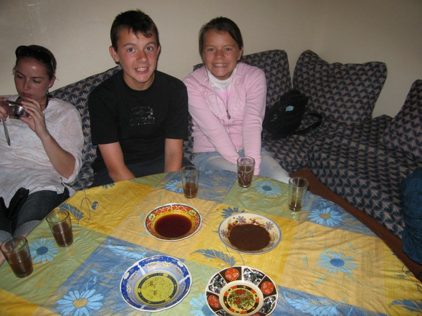 We were driven for a short distance to a mountain restaurant where we had a delicious traditional berber style lunch. The three of us were shown to a table with three others. Three miserable English students. They hardly spoke but when they did they only spoke between themselves and about themselves as they each tried to out-do each other.