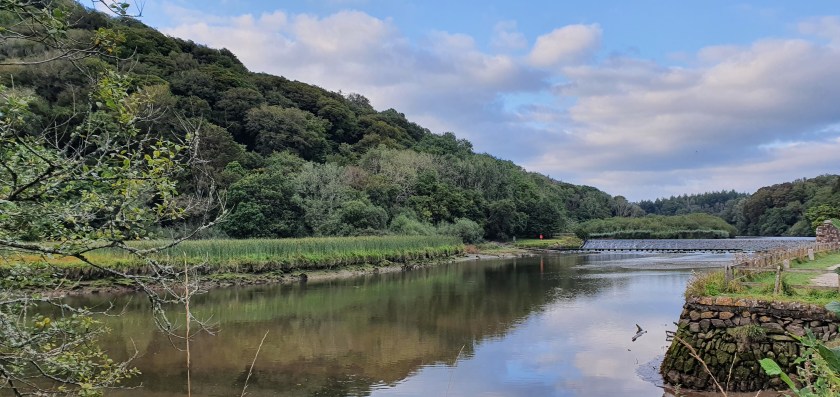 For our first evening Andy and Teresa took us on a short walk which started at Lopwell Dam and continued along the path next to the River Tavy before we turned back. Armed with binoculars we saw several species of birds and thanks to Teresa we were lucky enough to spot a kingfisher. Lopwell Dam is tidal and at low tide you can walk across the path to the woodlands on the other side. However you need to be careful to get the timings right otherwise you will get stuck and have to wait for several hours before being able to cross back again!