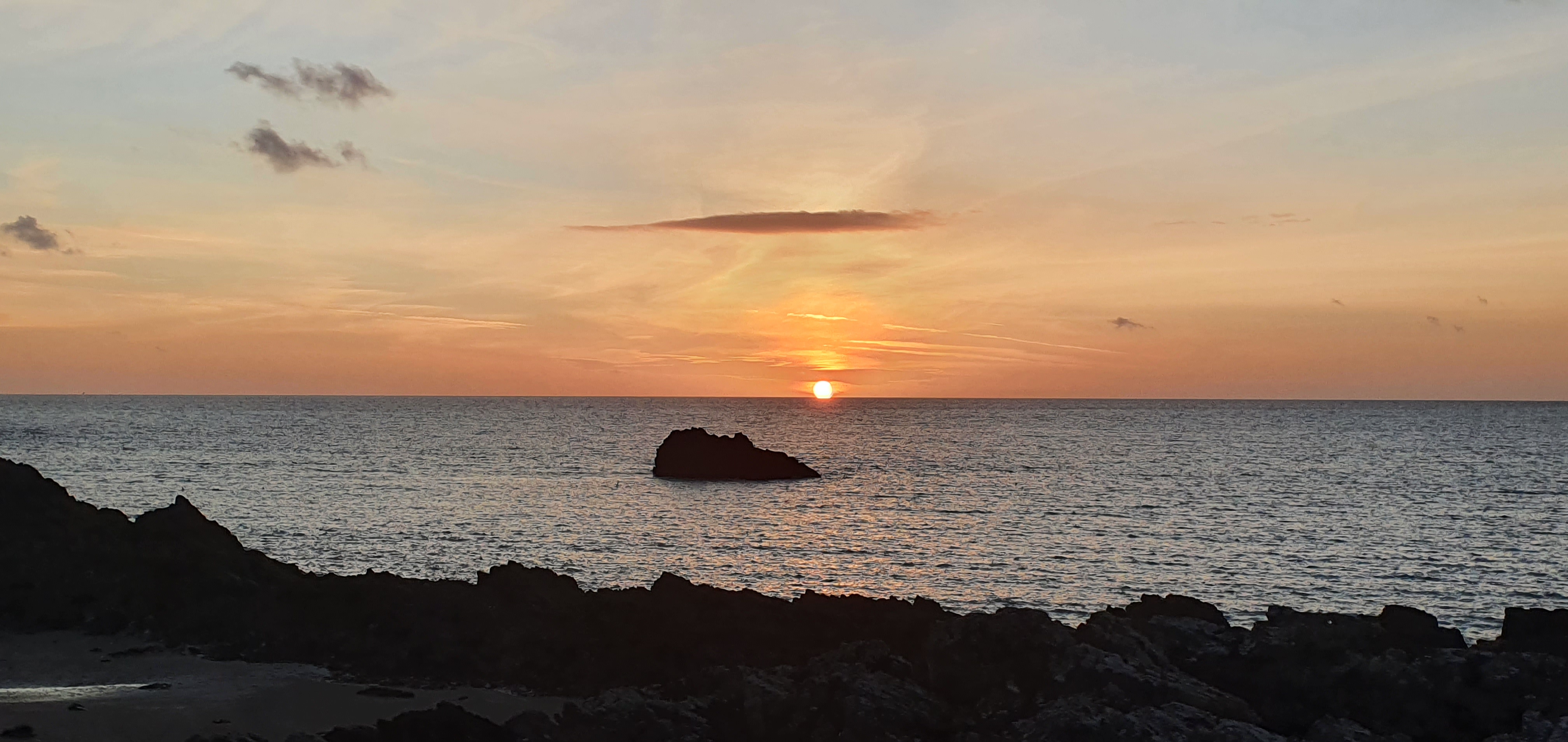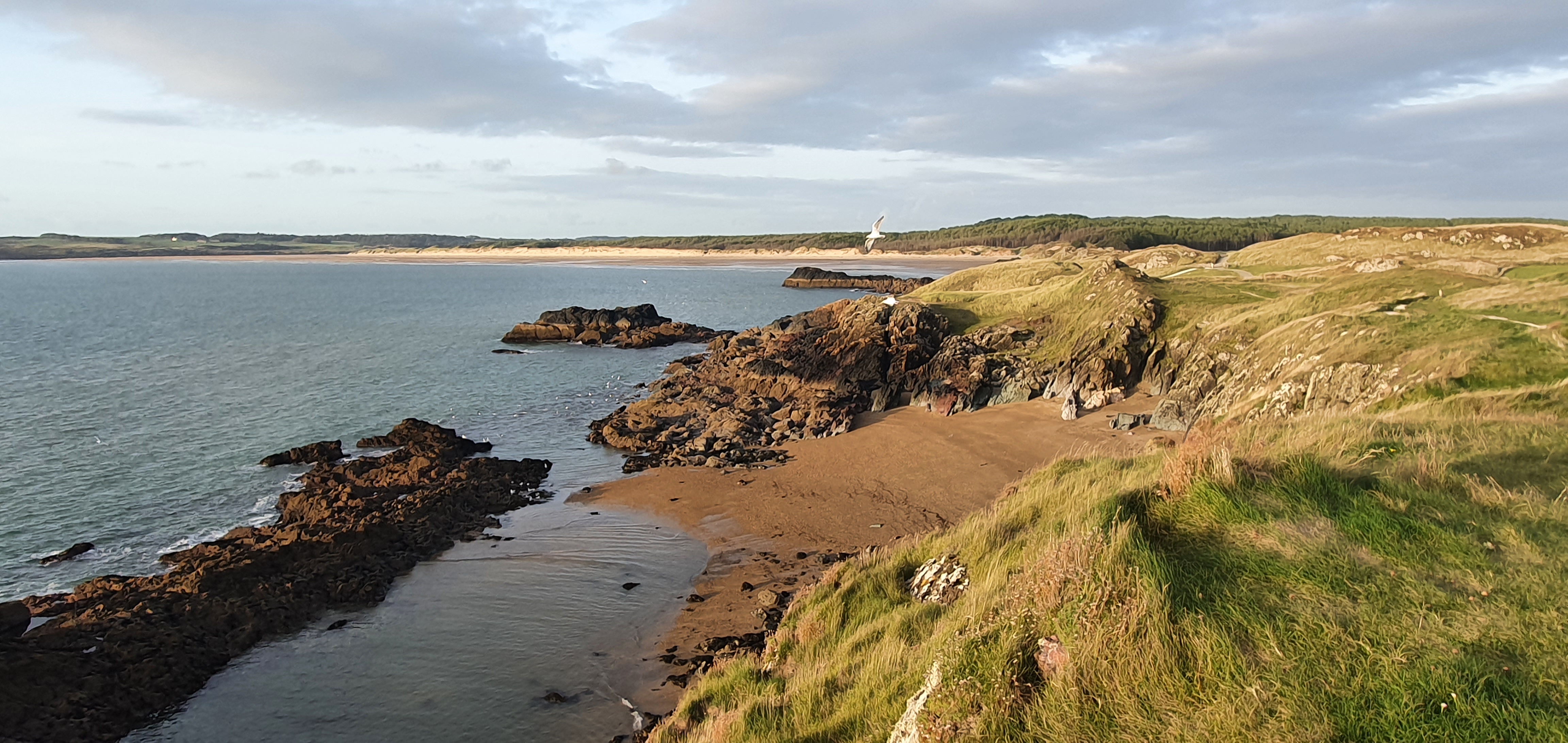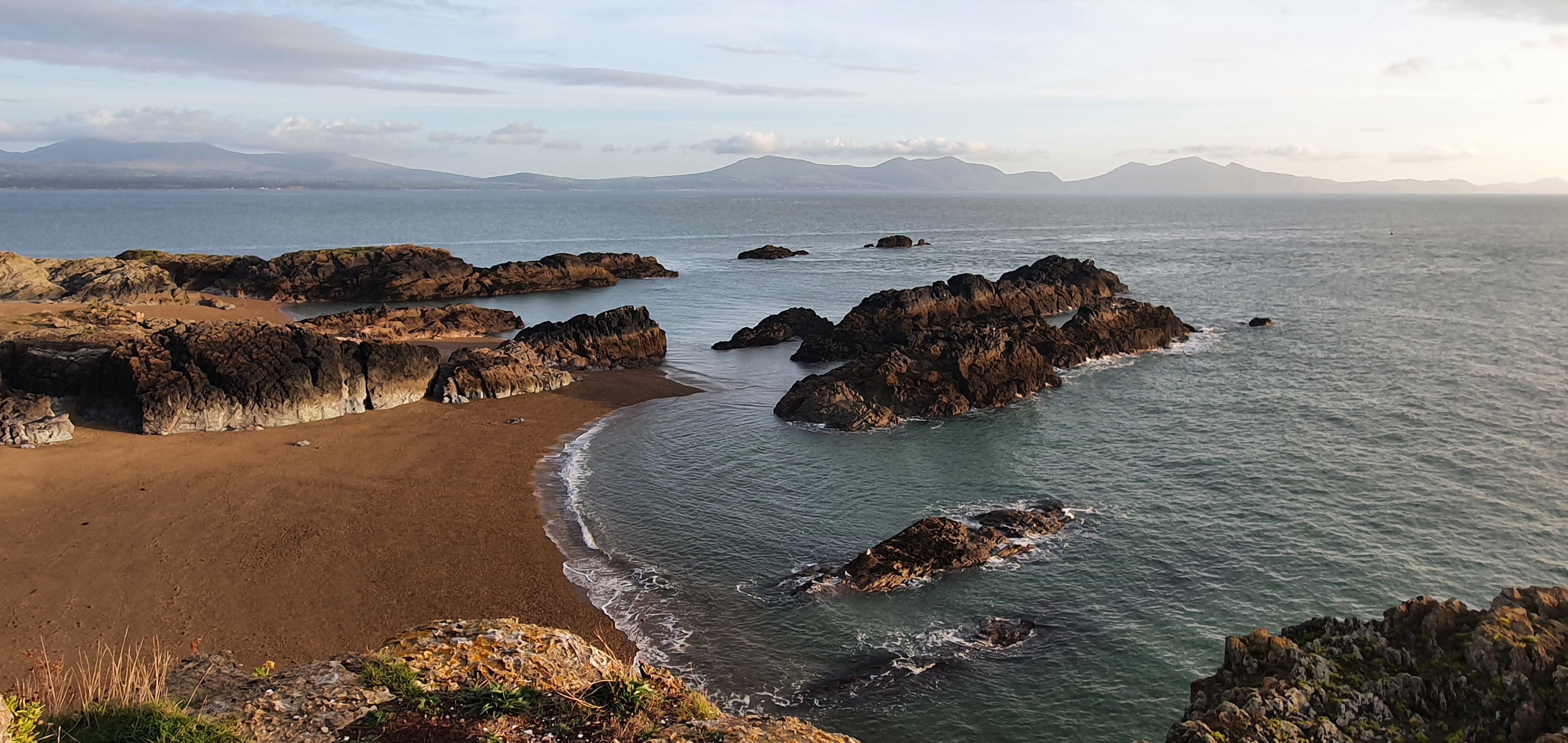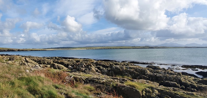 We enjoyed this lovely tranquil location as we sat in the soft grass down a small slope away from the coast path with the occasional person or group of people walking behind us. From here we could see the mountains of Snowdonia in the distance.