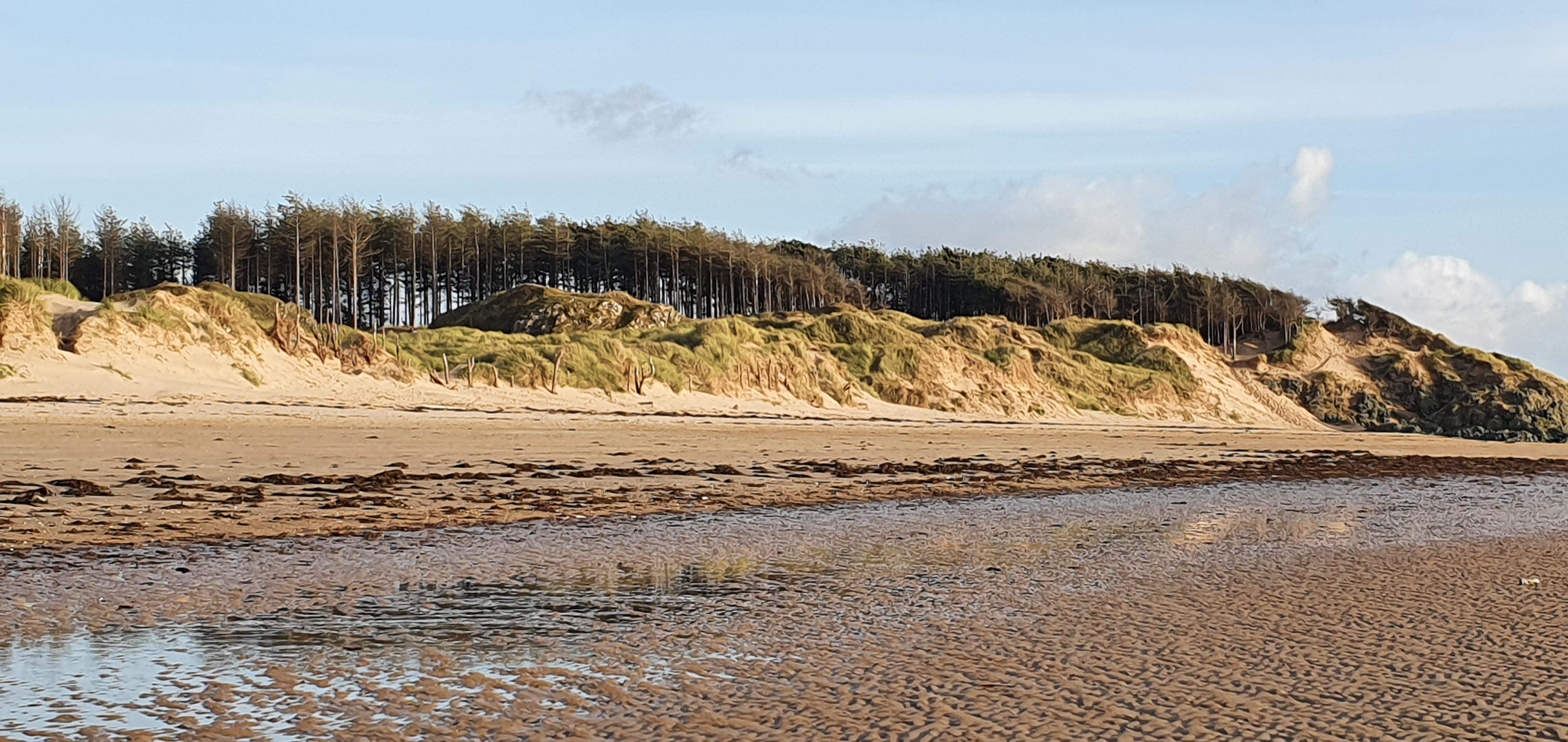 Eventually after well over an hour we came across some dunes which led to the stunning, wild and deserted Malltreath beach! A real jaw-dropping wow factor and reward for persevering through the forest 🙂 At this point, we had already walked for about 9 miles throughout the day so three of our party (and the 3 dogs) turned back and headed through the forest to return to the cars.