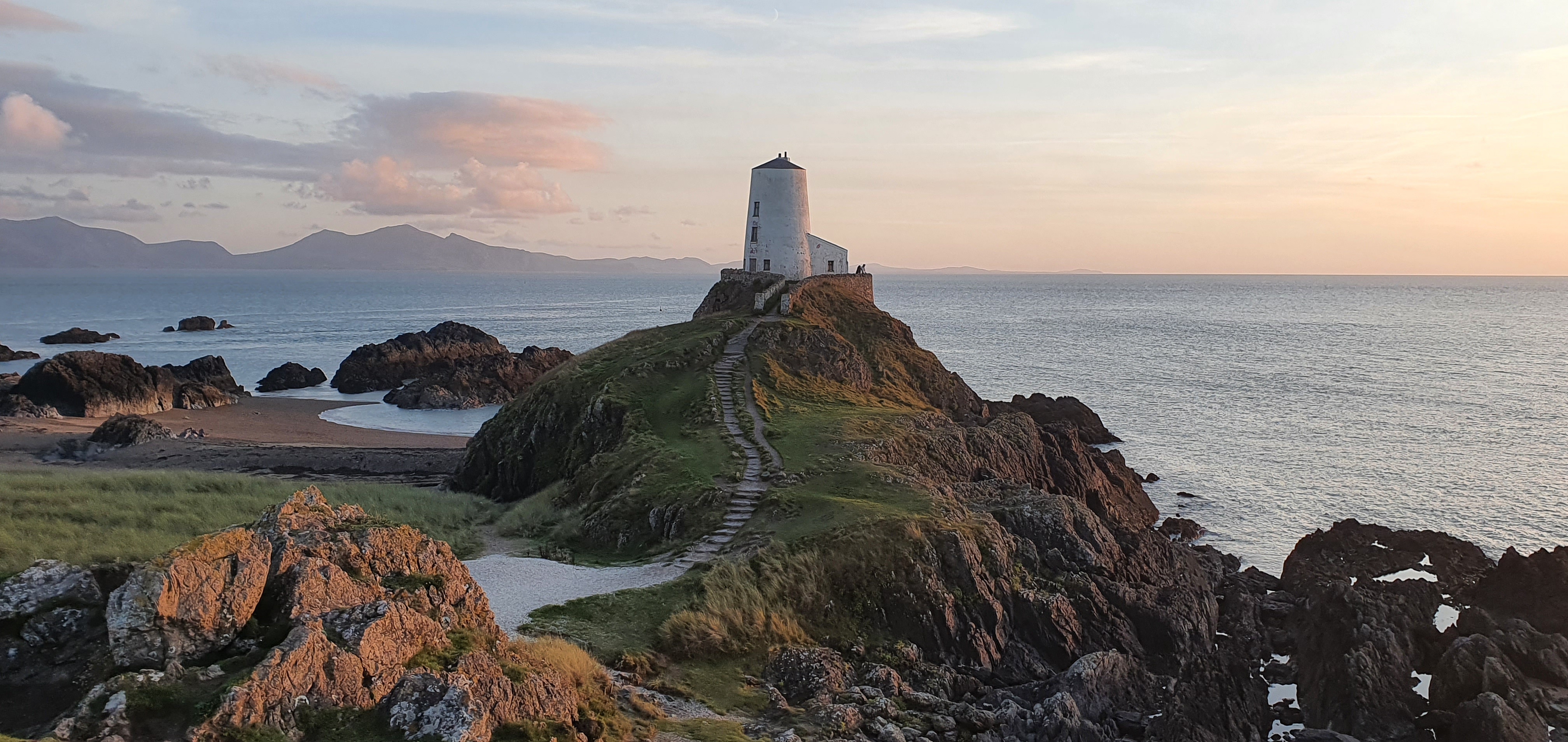 Twr Mawr Lighthouse is almost at the end of Llanddwyn Island and you can walk around the path at the base of it for spectacular views. It was build to help guide ships along the southern Menai Strait.
