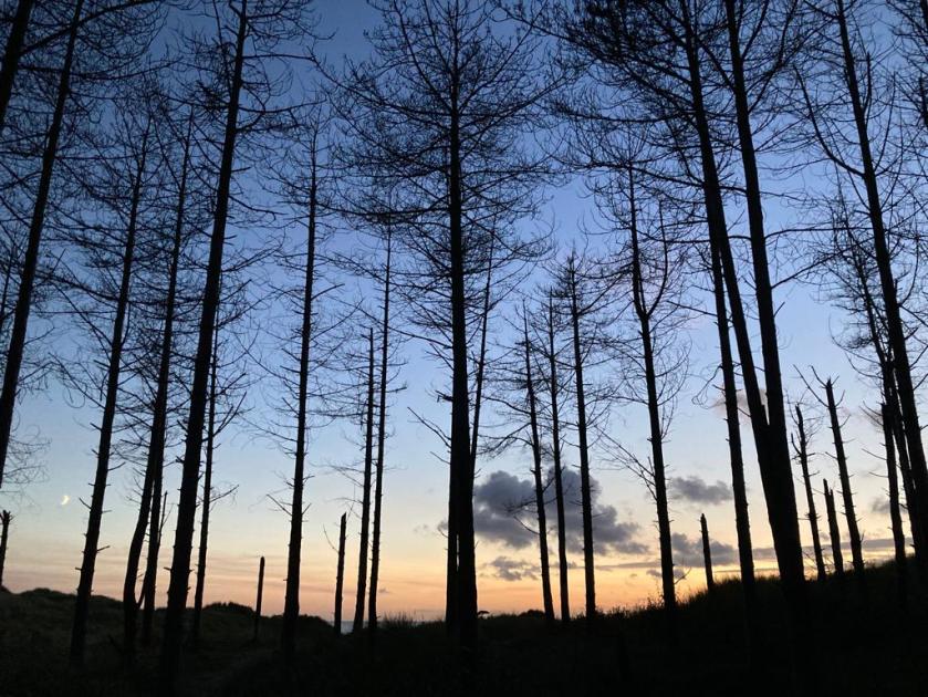 Having walked for the mile or so right along the peninsular and across the dunes it was rapidly getting dark as we reached the forest. We walked as fast as possible in fast fading daylight and were soon just about able to make out the track through the forest. The night sky was clear and stars twinkled above us and we could hear owls and other wildlife around us. Even though our pace was quick it still took another hour through the dark forest before we reached the cars!