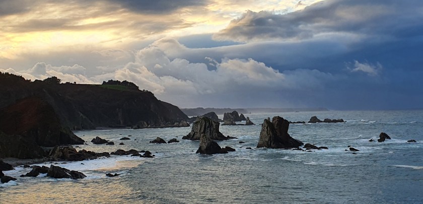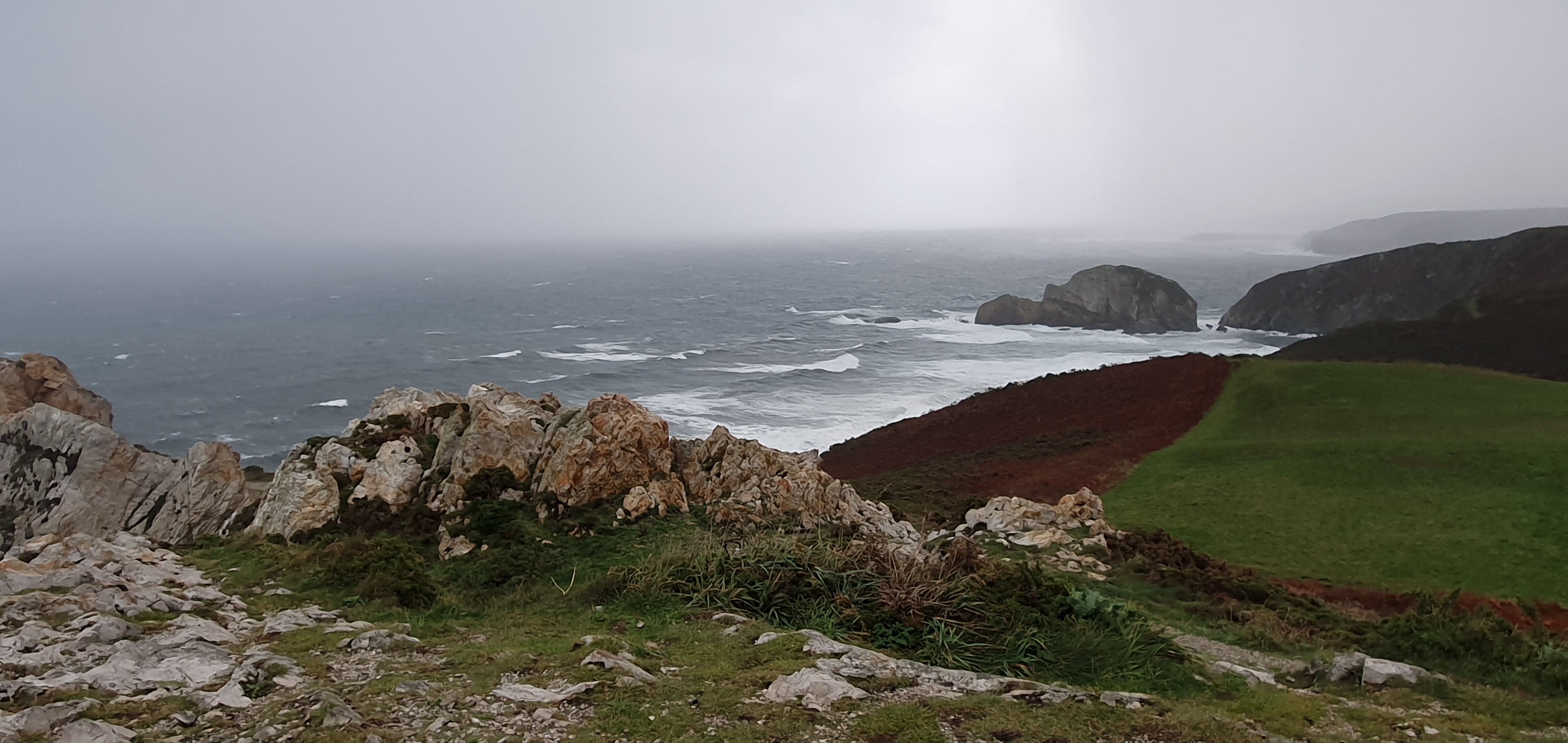 On the same rough stormy day, we drove to Cabo de Peñas, the most northerly point of Asturias. You can park near to the cape and walk along the cliff along a footpath. Even in poor conditions the views were spectacular.