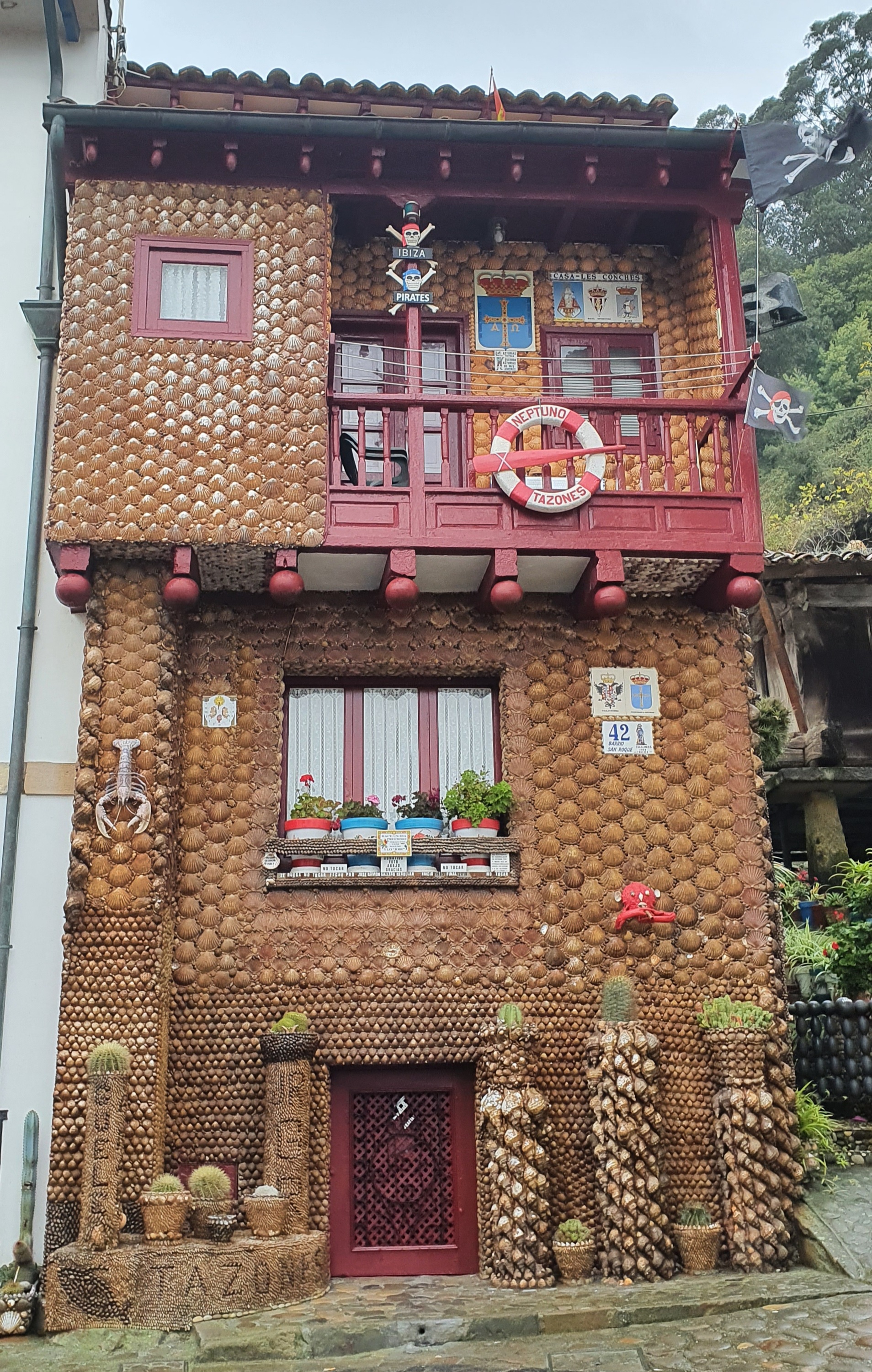 On our way to the Jurassic coast we stopped for a coffee in the small pretty seaside village of Tazones and found a house decorated in shells!
