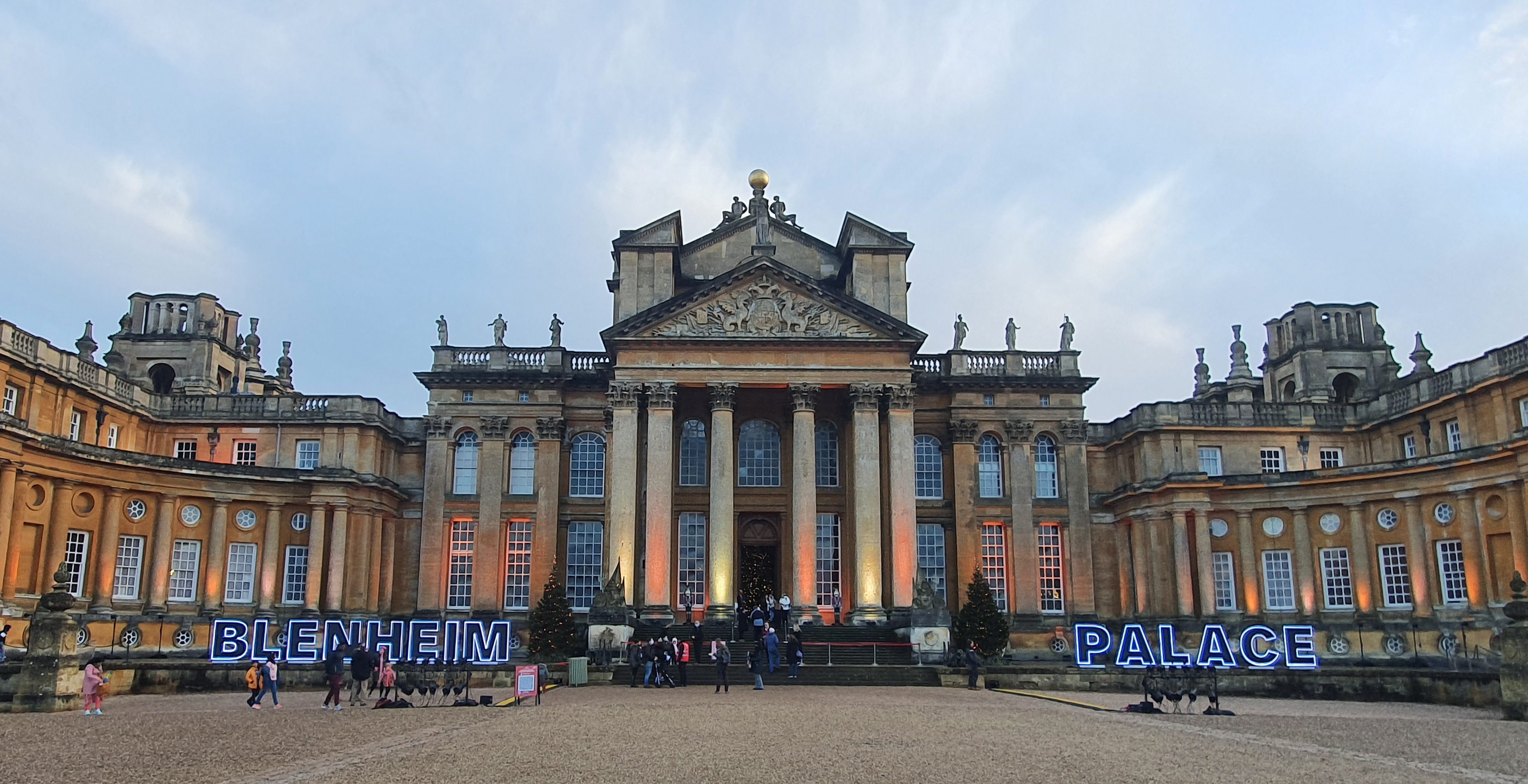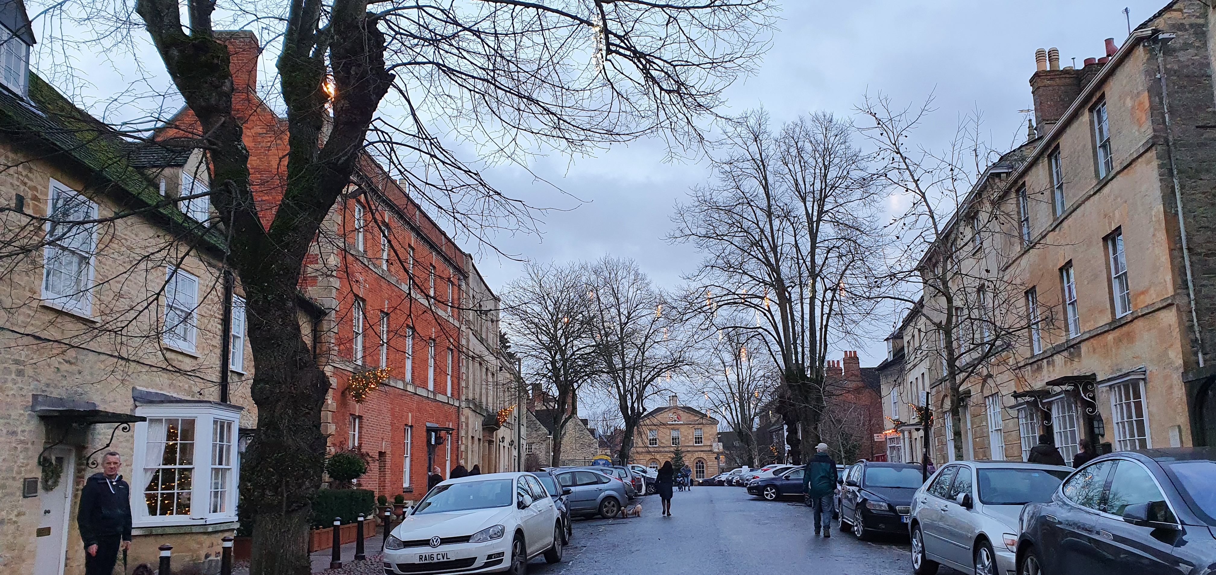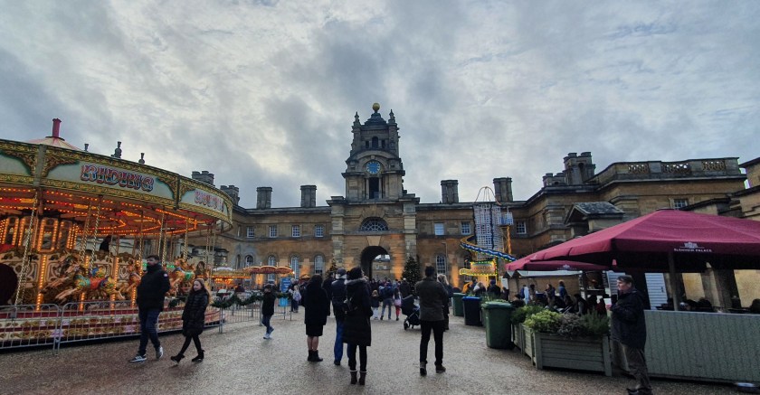 From Blenheim Palace we walked back through Woodstock to the cars. Woodstock is a pretty village and by now in the twilight was twinkling with Christmas lights.