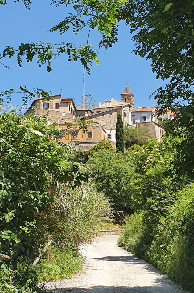 Formello had another historic gate as the entrance to its old town and this old town was just as enchanting as the others. We had found a modern coffee shop just before the gate where we sat in much welcomed air conditioning enjoying a coffee, freshly squeezed orange juice and an apricot tart (all for under £5 each). We noticed that blackcurrent and apricot tarts are a strong feature of Italian breakfasts – almost all of the accommodations provided these.