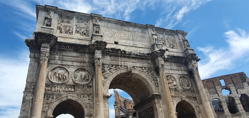 Passing the Colosseum and Constantine Arch we arrived at Palatine Hill, the most famous of the seven hills of Rome. However at the entrance to the Roman Forum we found that we needed to have pre-booked tickets. So we decided to find an outside cafe to think about what to do next.