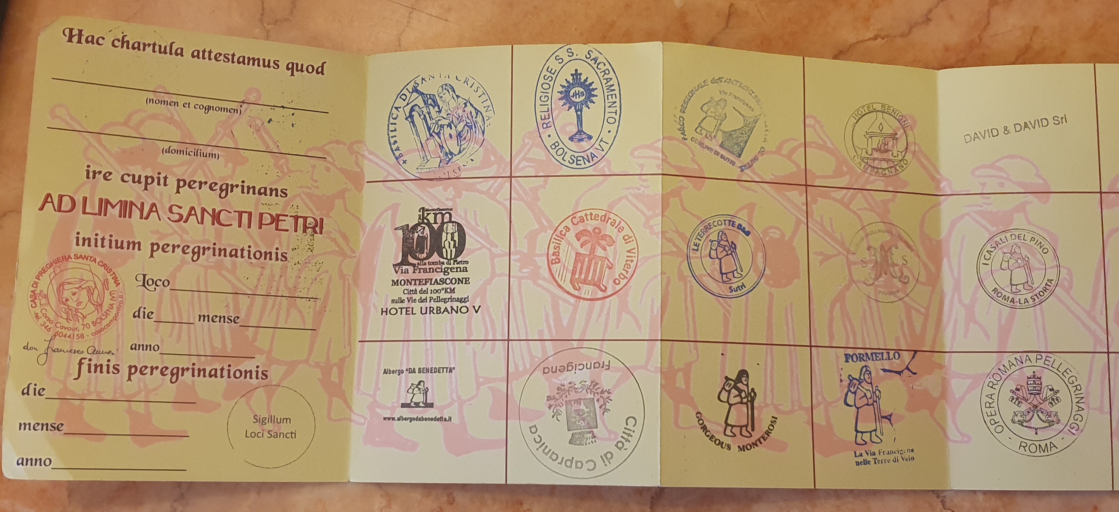 P.S. Russell got up at 7 am the day following the end of our walk and went back to St Peter’s Basilica on his own to collect our Via Francigena certificates before the crowds arrived. That was so kind and we were very grateful to him.