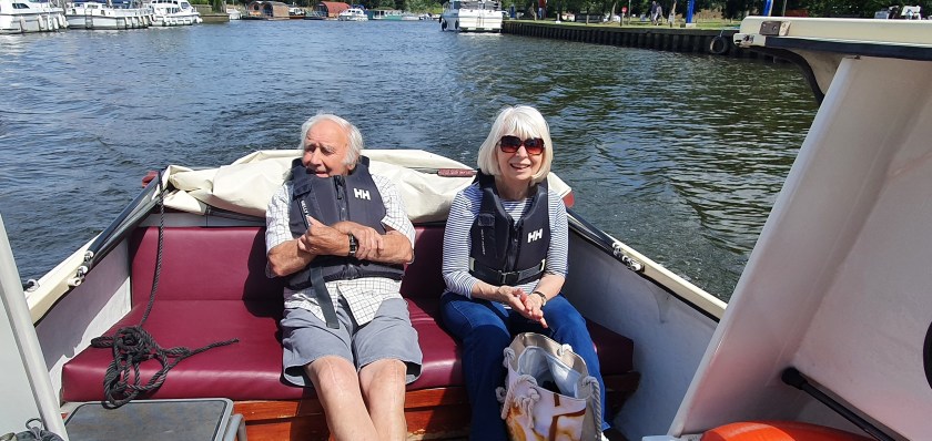 Once we had been shown to our boat and were given some basic instructions we were soon let loose in the Broads National Park! Chris and I took turns in driving the boat while my parents relaxed in the back like lord and lady of the manor š