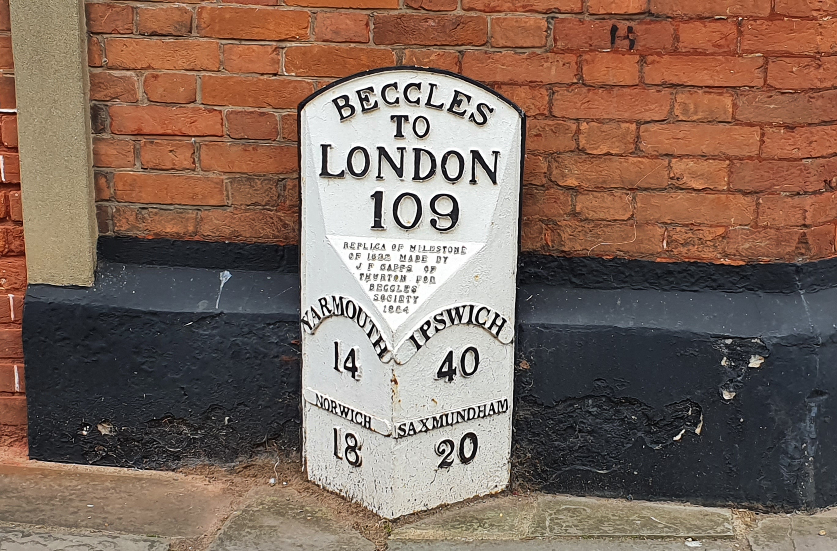 We learned from a sign that the name “Beccles” comes from a combination of two words; “Beck”, which means “stream”, and “Leas”, which means meadow. Therefore, Beccles can be roughly translated as the “meadow by the stream”.
