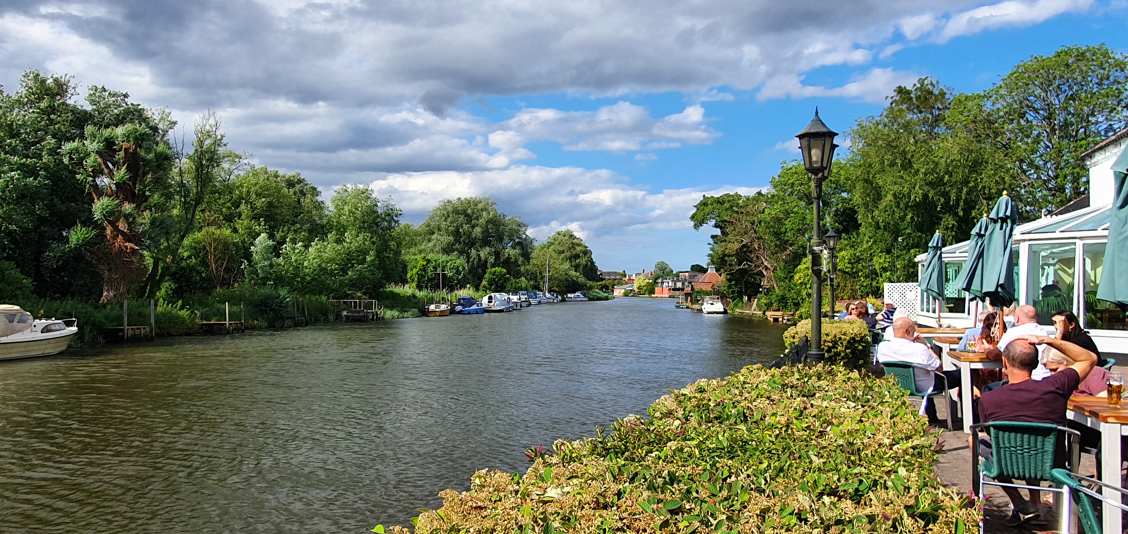 It wasn’t too far to walk down to the Waveney House Hotel where the four of us enjoyed a late afternoon drink in the garden overlooking the river.