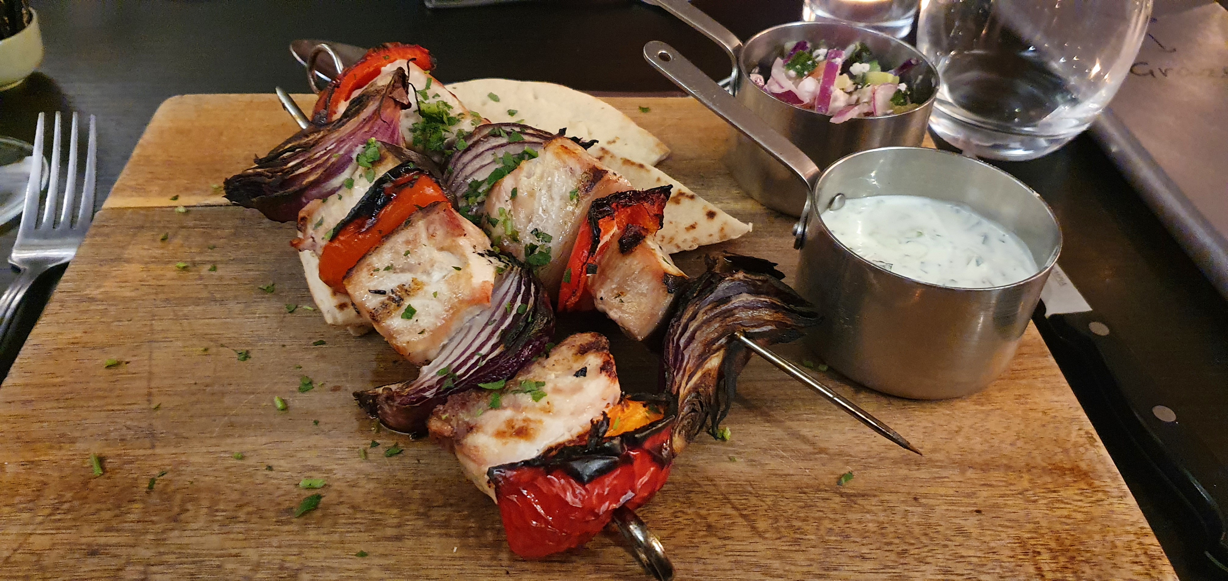 Chris and I both had swordfish for our main meal and it was superb – our first taste of swordfish š
