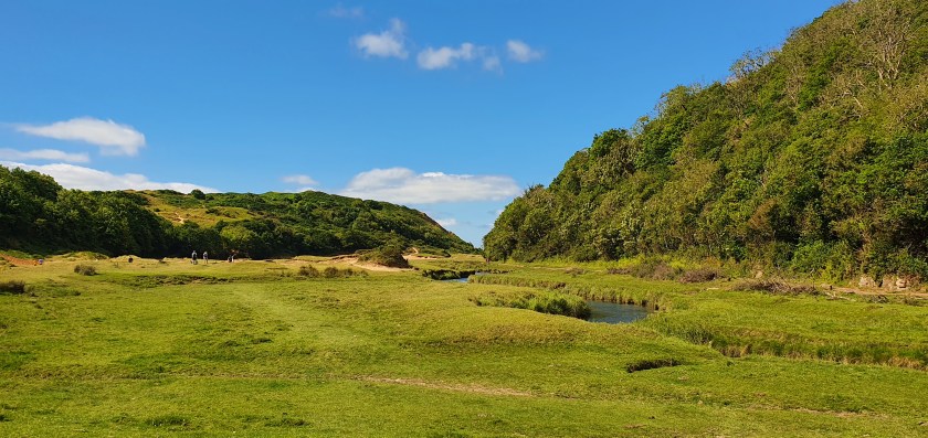 From the castle we walked back towards the car park. There wasn’t much in the way of signposts and we ended up walking on the edge of Pennard Golf course! With the help of Google Maps we found our way back to the wooded footpath and the car.