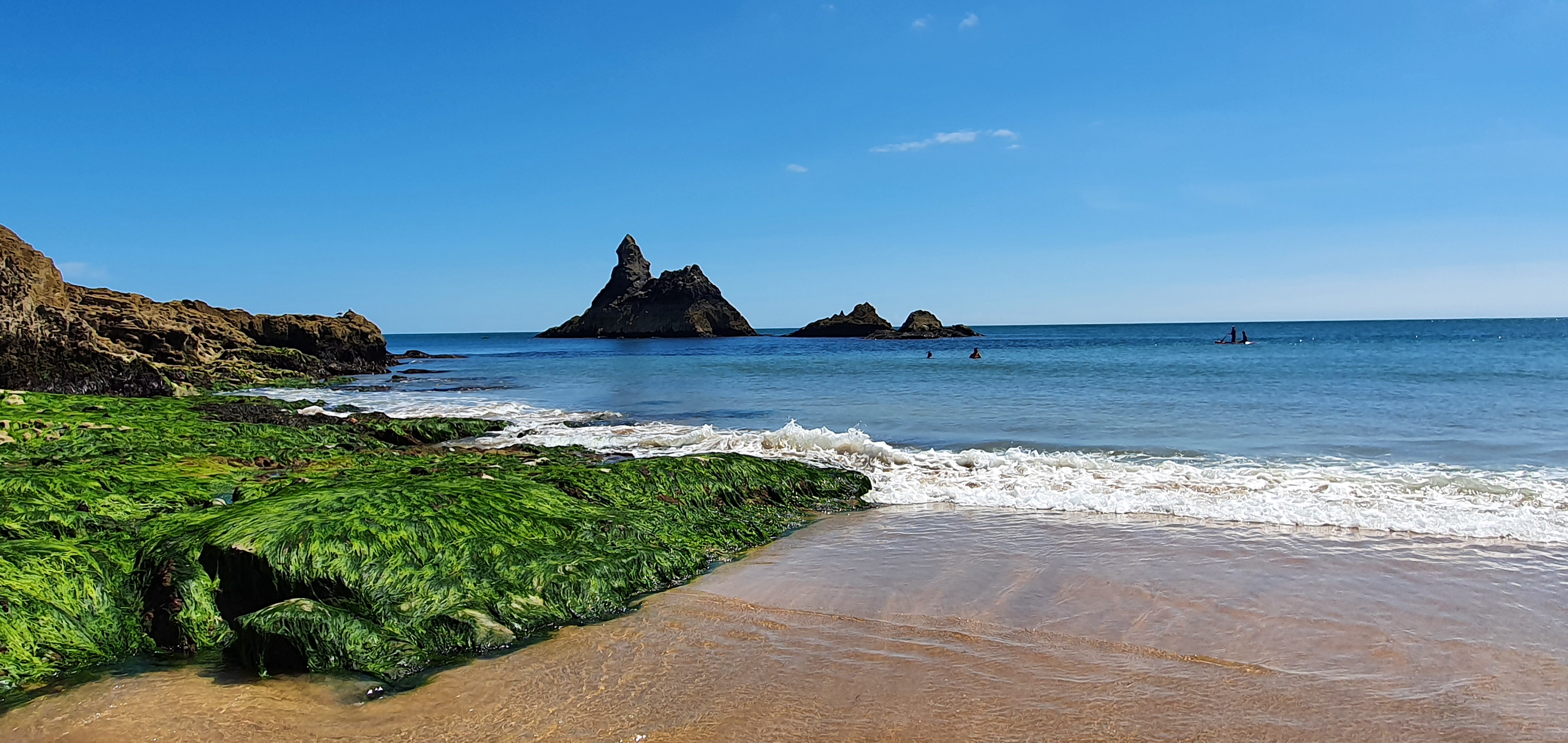 This started to descend to what we assumed to be the beach but we ended up walking for about 20 minutes around a dense path around the headland and then back up to the intersection again… We found the correct path as you approach from the meadow was ahead but slightly to the right (not the coast path on the immediate right) where you immediately see the 151 steps directly down to the beach.