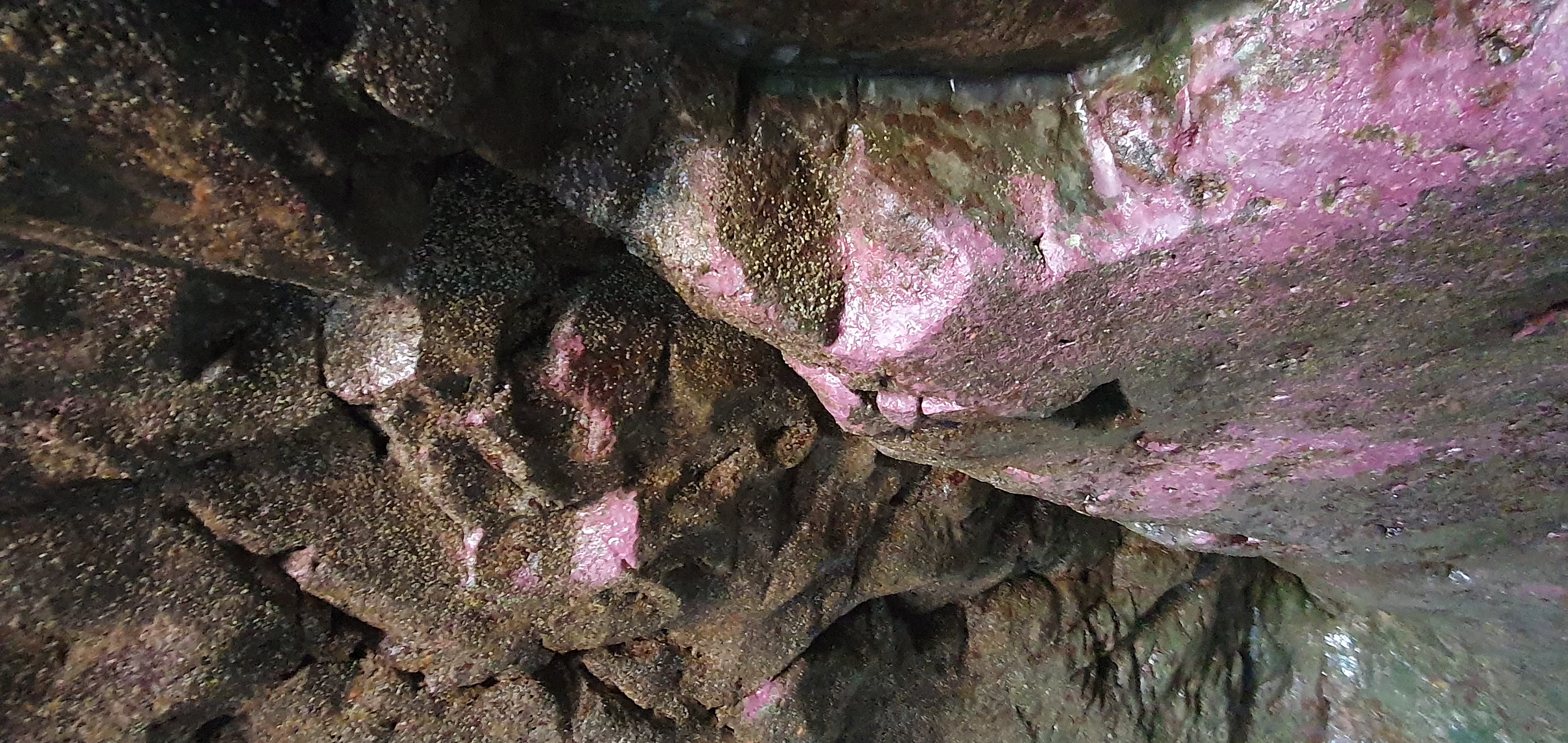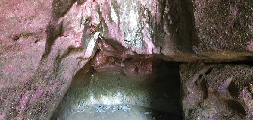 We wandered over to explore, had a look inside the cave and found pink mineral deposits!