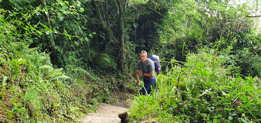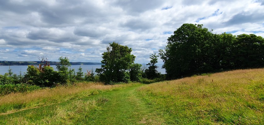 Monkstone beach had good reviews and was about 7 miles from Narberth so we decided to go and explore. The information in the website informed us that a half mile walk with 151 steps is necessary in order to get down to the beach. The first part was straightforward, we walked past Trevayne Farm and Camping & Caravan park and across the meadow above.