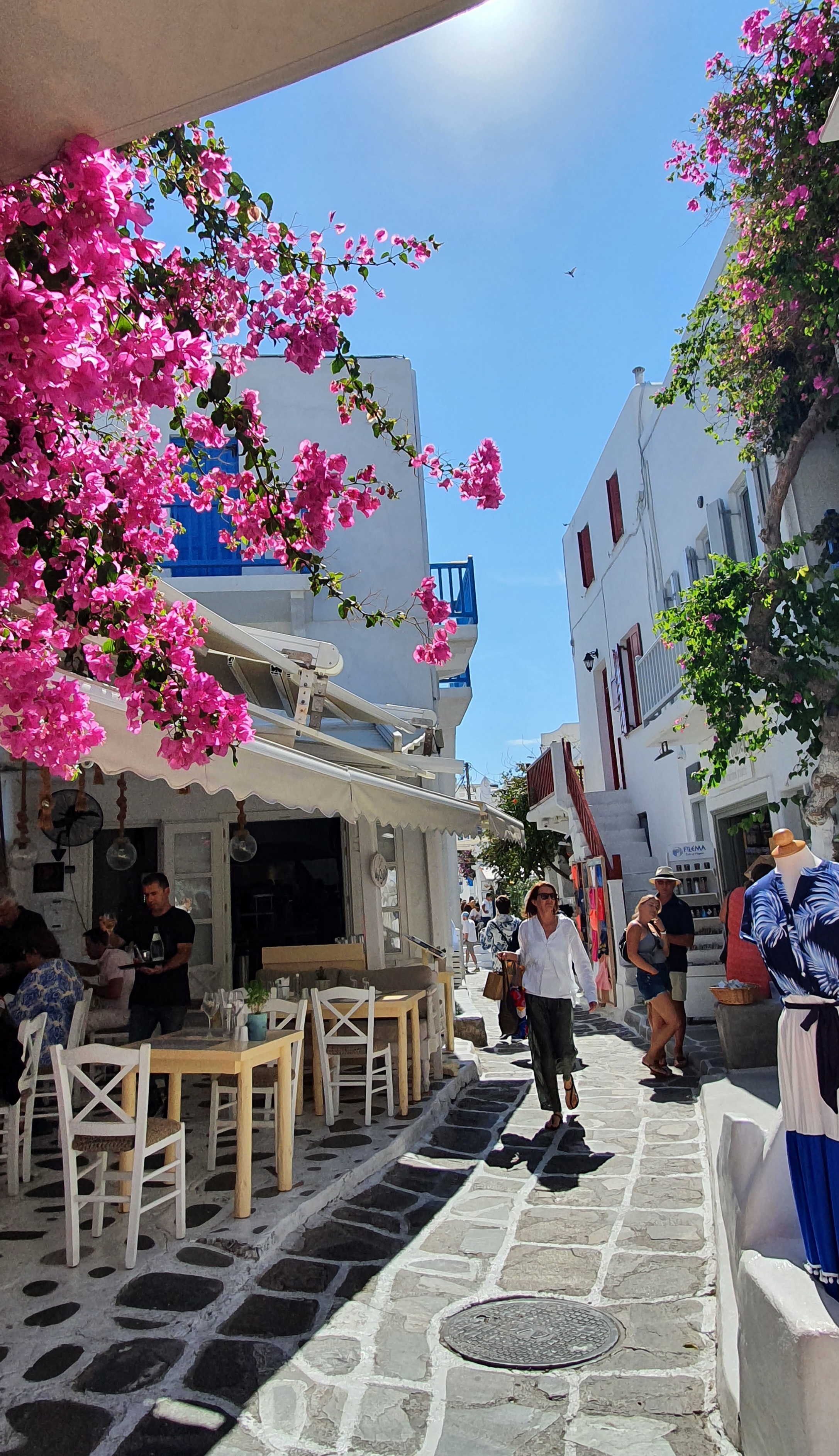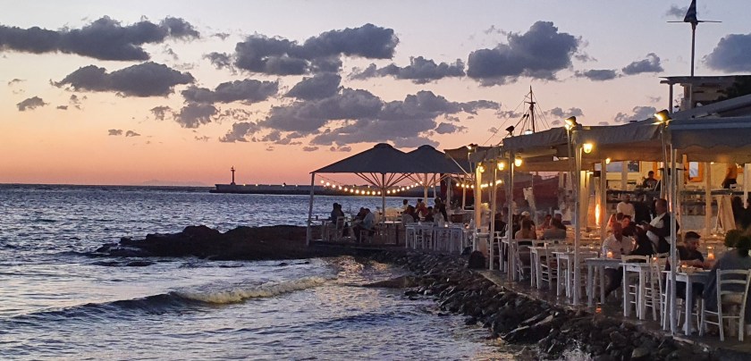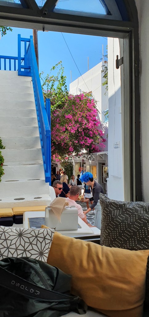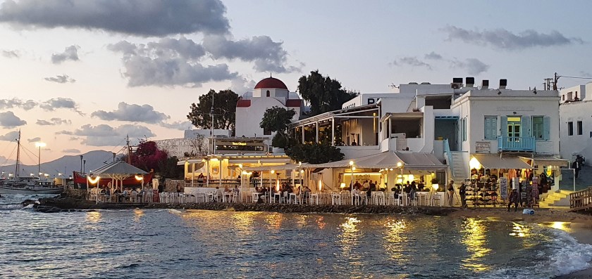 We found our way to Little Venice (officially called Alefkandra) the charming and picturesque corner of Mykonos Town full of colour and quaintness. If you are lucky you can bag yourself a table next to the sea, although you may get splashed in certain spots!