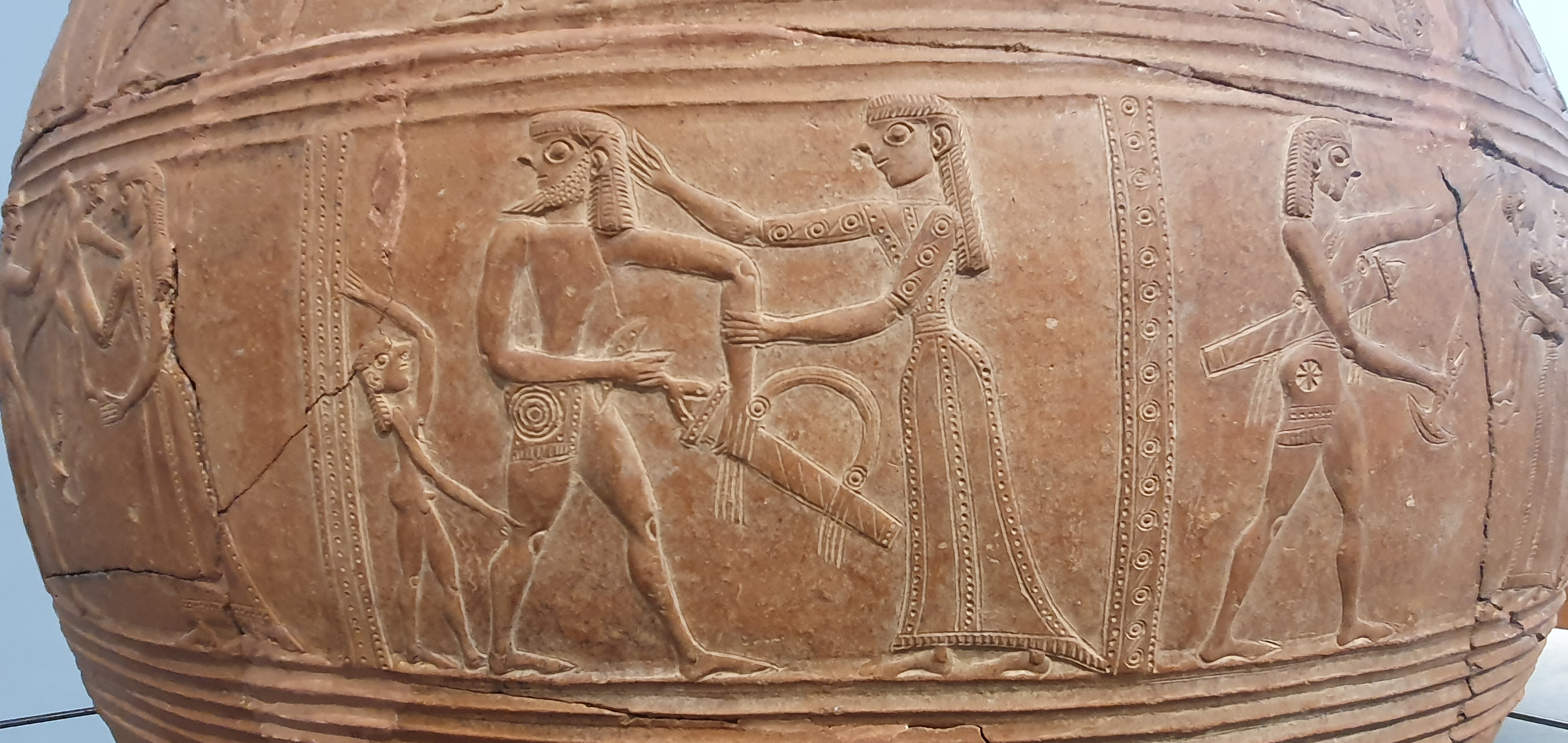 The close up above shows scenes of the capture of Troy and the oldest known depiction of the Trojan Horse.