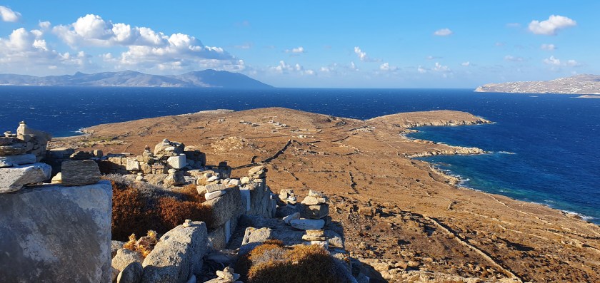 With an elevation of 112 m, Mt Kynthos isn’t high by mountain standards! However we did see spectacular views across to Mykonos and the surrounding small islets.