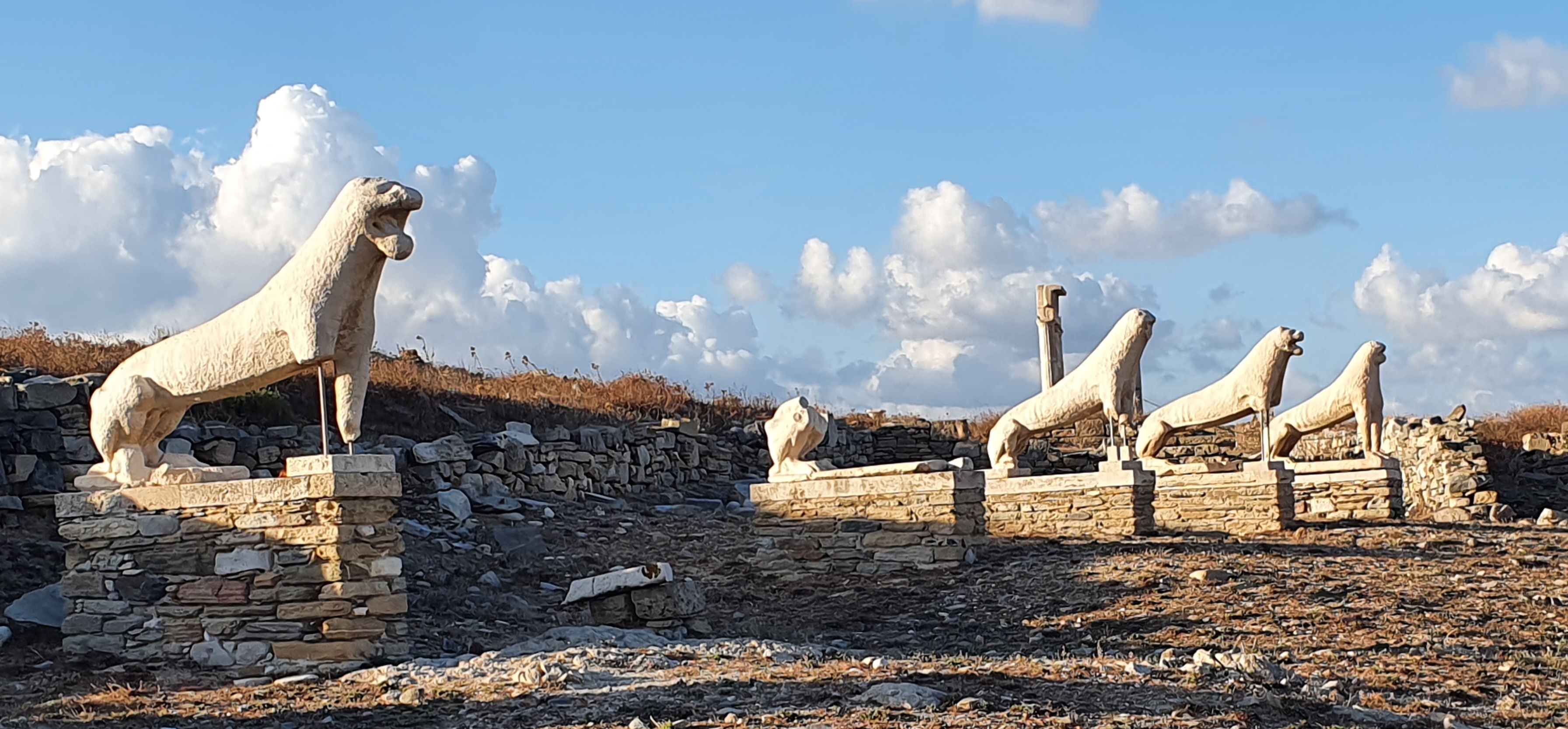 The Terrace of the Lions is one of the most famous images of Delos. There would have originally been 9 to 12 marble lions which faced towards the Sacred Lake of Delos as if to guard it. Today there are only 5 lions.