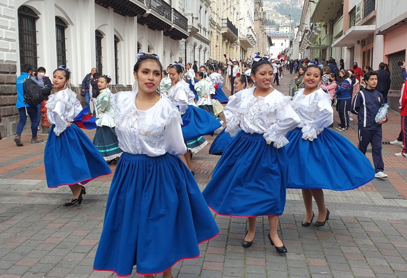 The following morning we were about to leave Quito for our drive to Cotopaxi however this was not the end of the colour and culture of the city! Outside our hotel a parade was taking place. It was a treat to spend a bonus half an hour watching students representing each of the 250 high schools of Quito celebrate the foundation of the city back in 1534.