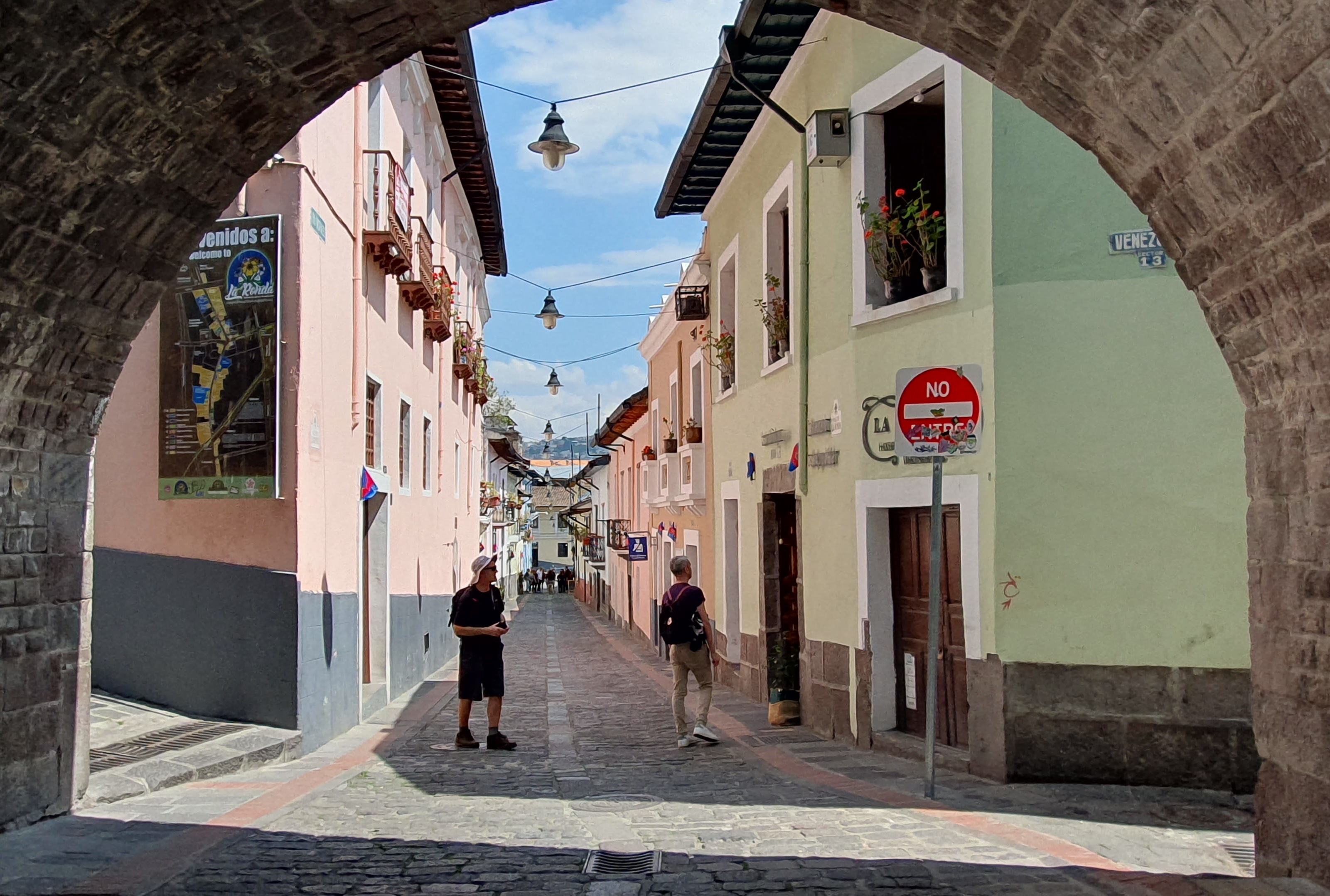 Safety in Quito. As South American cities go, Quito felt reasonably safe. However there were a lot of police officers. My guide book says Quito’s Metropolitan police are very friendly and at one point, one came over and chatted asking our names while also suggesting I carry my backpack on my front! The book suggests to avoid certain areas and to be aware of pickpockets and bag slashers.