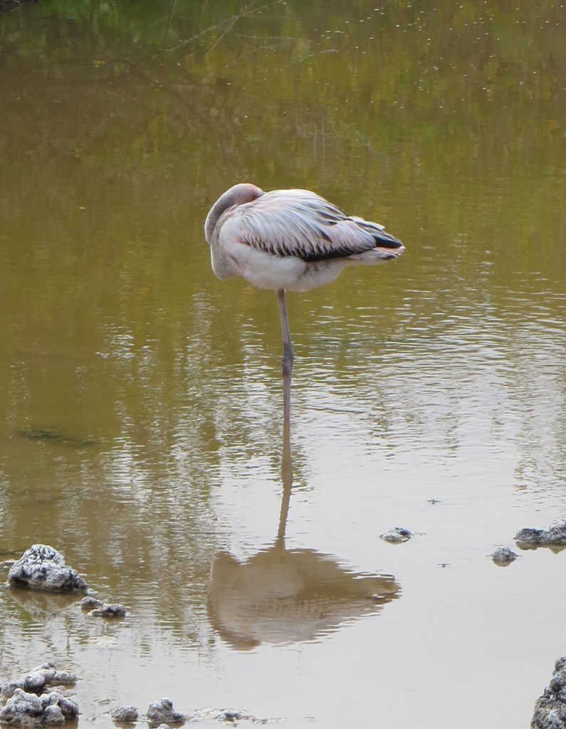 Just at the back of the beach was a wetland area with a flamingo.