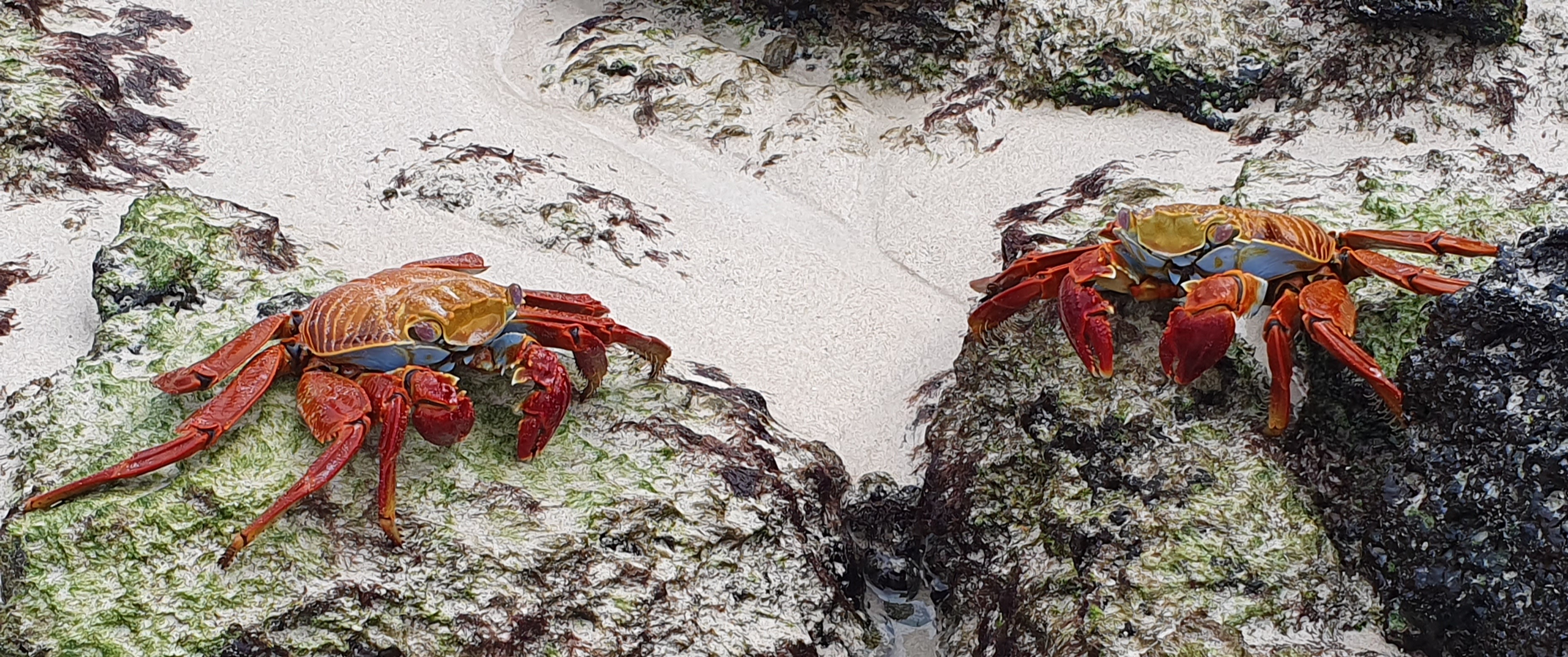 And scampering on the black volcanic rocks were bright colourful Sally Lightfoot crabs (also known as red rock crabs) which are found in the Galapagos and also along the west coast of Central and South America.