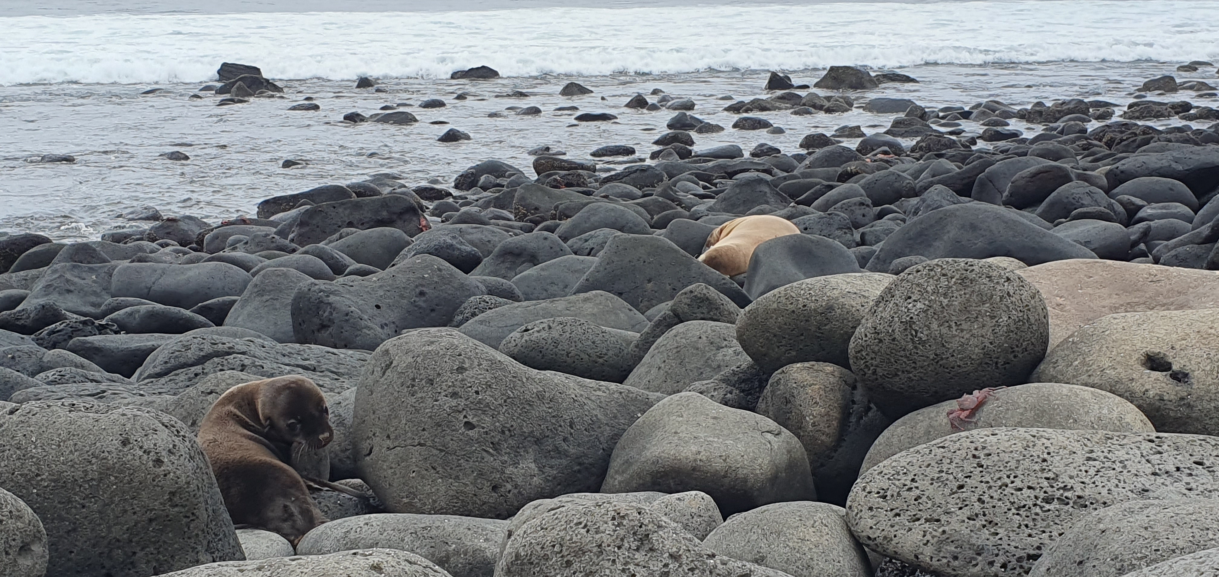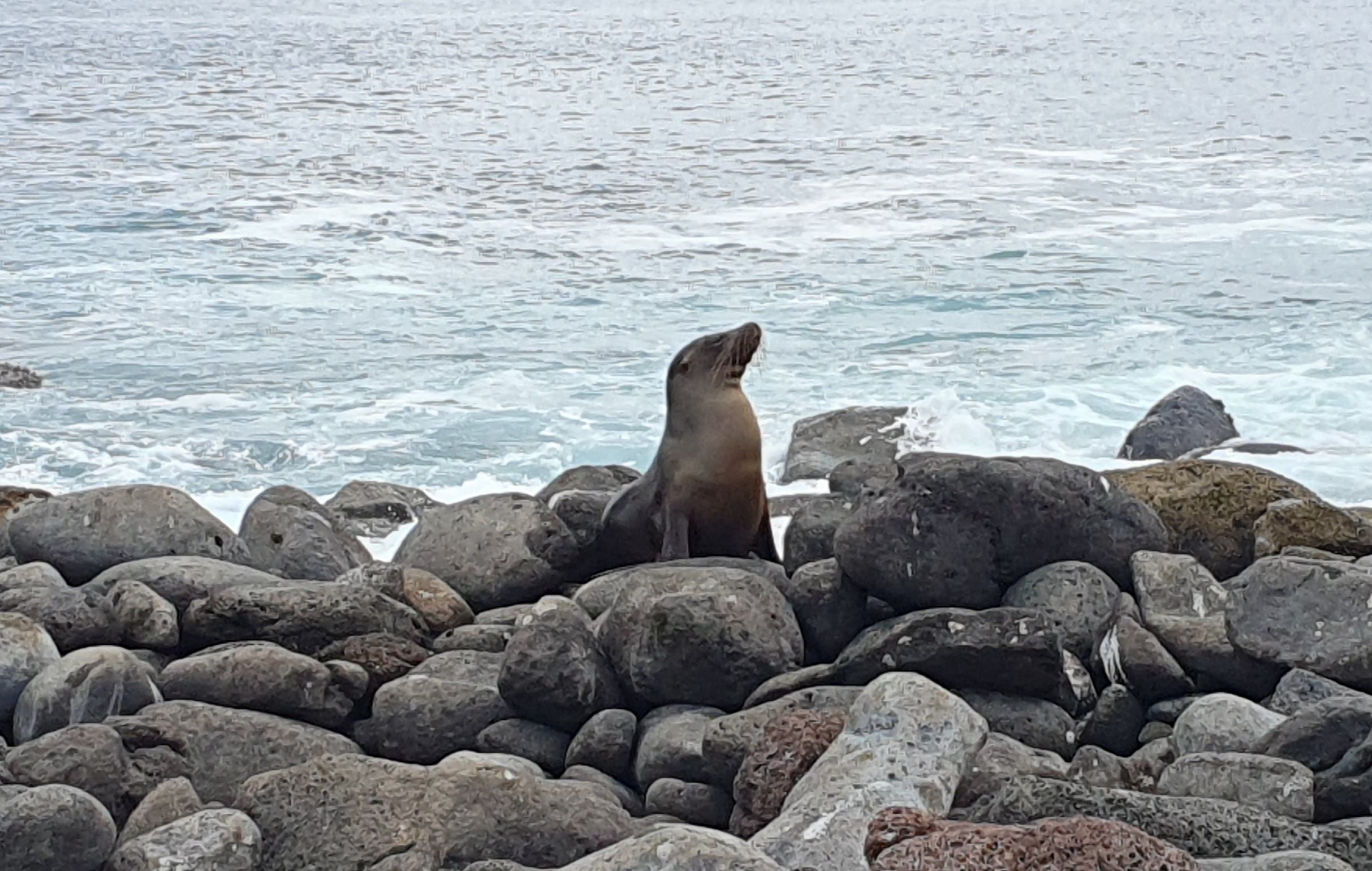 We walked past a blue footed booby in its nest on the ground and reached a beach at the other side of the island where we saw some sea lions.