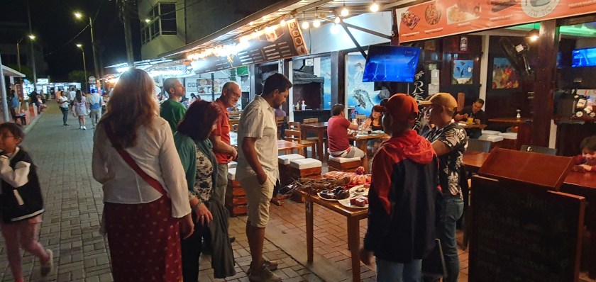 For dinner tonight Leo took us to a street food market which was lined with informal eateries. This was our first taste of Galapagos cocktails which were being served at 3 for $10USD.