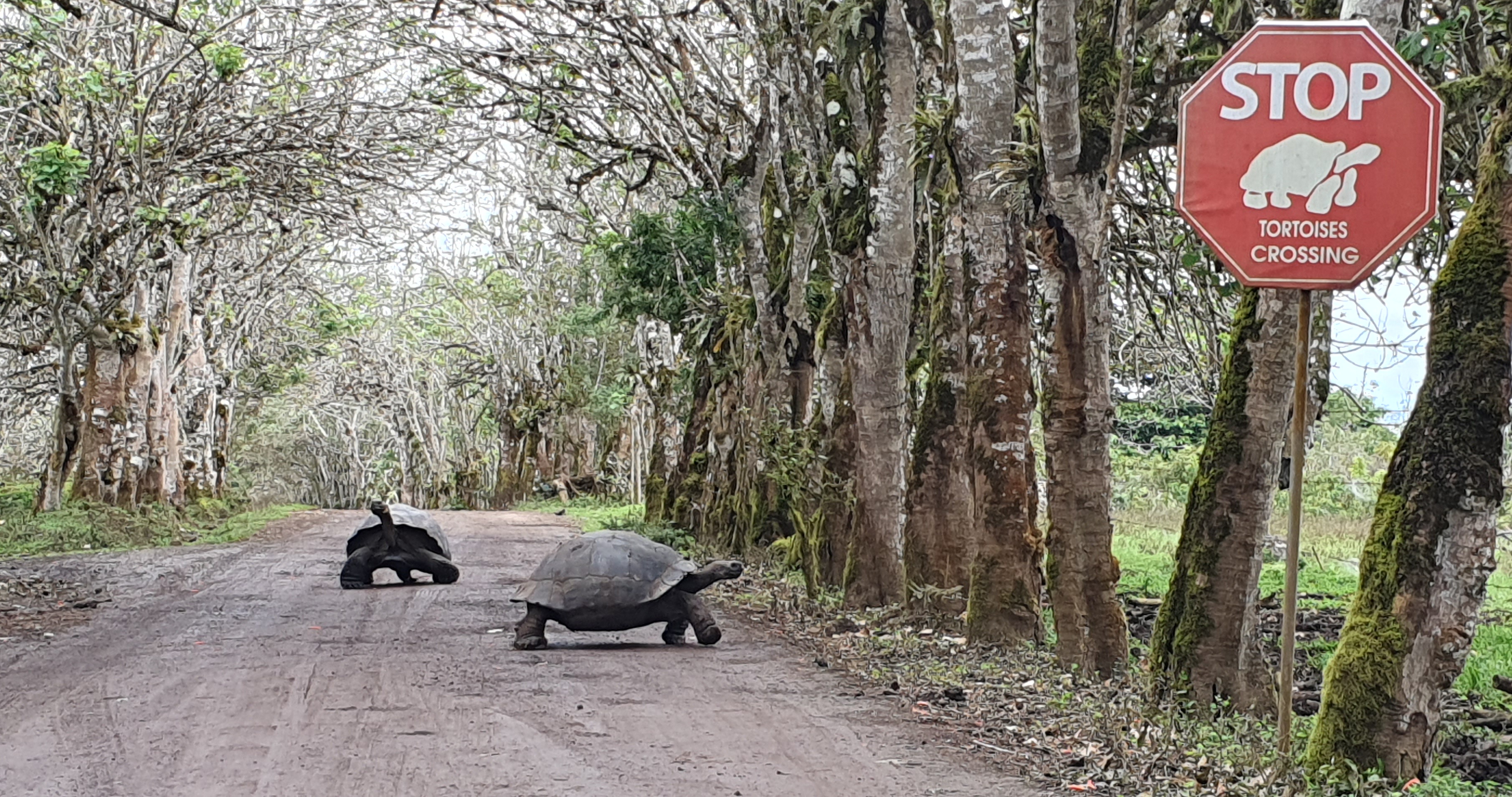 Next up was lunch and a visit to a Giant Tortoise Reserve. As we were driven to the El Chato Ranch we had to stop in the road to let some giant tortoises cross! We thought we may be there for a while so we got out and watched tortoises roaming about in the fields and woodland where they are free to wander as they please.