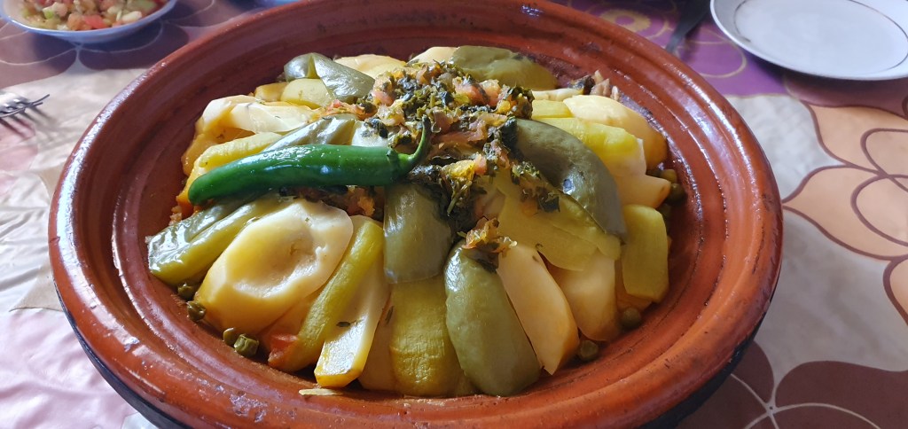 Next he put a huge tagine in the middle of the table which contained goat and vegetables. The vegetables were tasty, tender and perfectly cooked. I tried a small piece of goat but as I generally avoid meat I left that for the others.