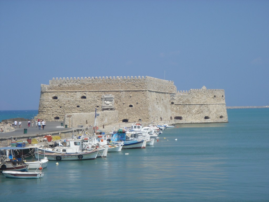 We then headed for Lion’s Square, the heart of Heraklion. We walked towards the harbour and had a look round the Venetian Fortress, standing guard over the town.